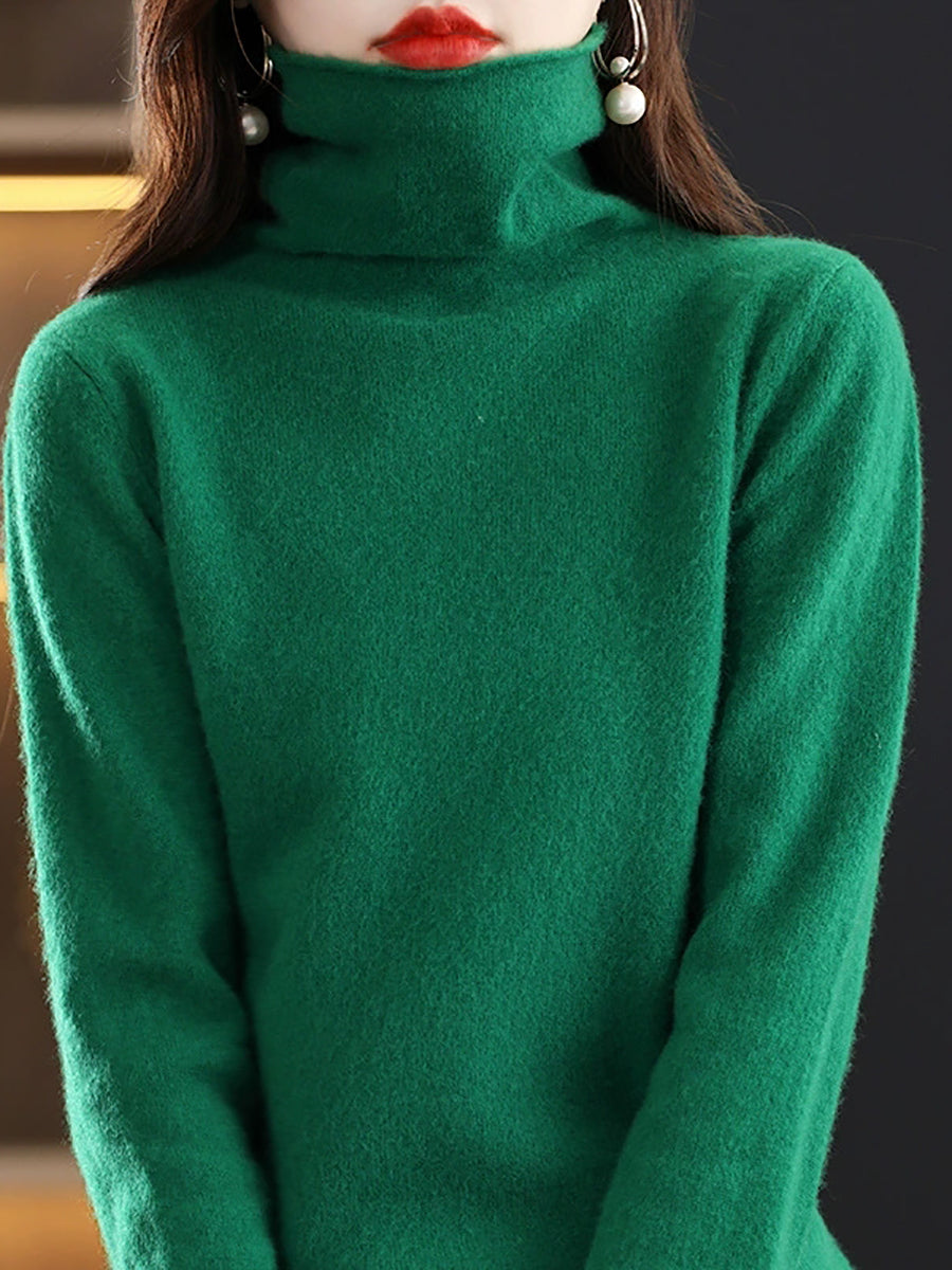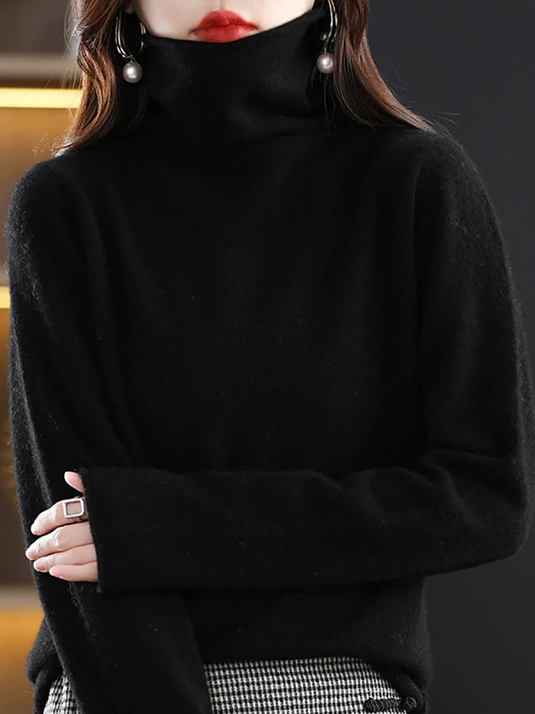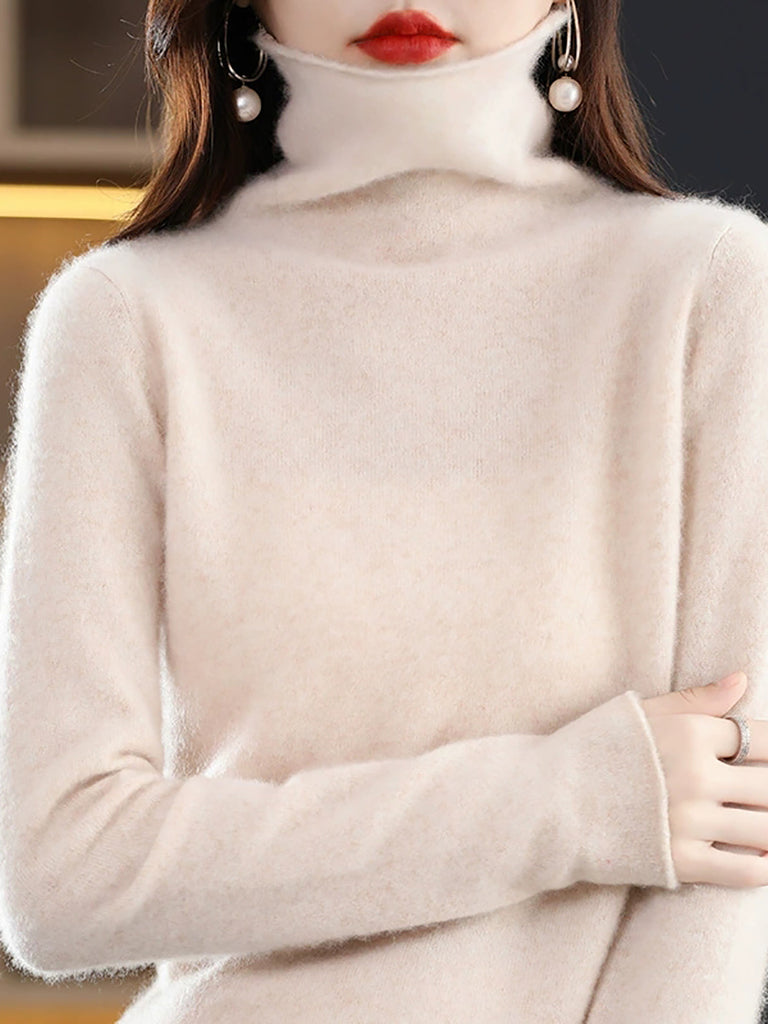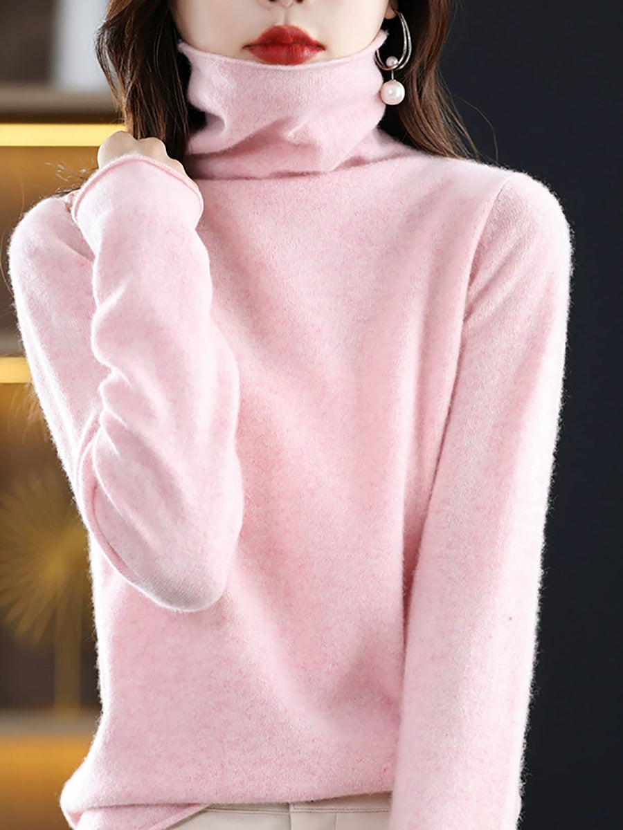 Pull en laine tricoté à col roulé décontracté pour femme, collection automne