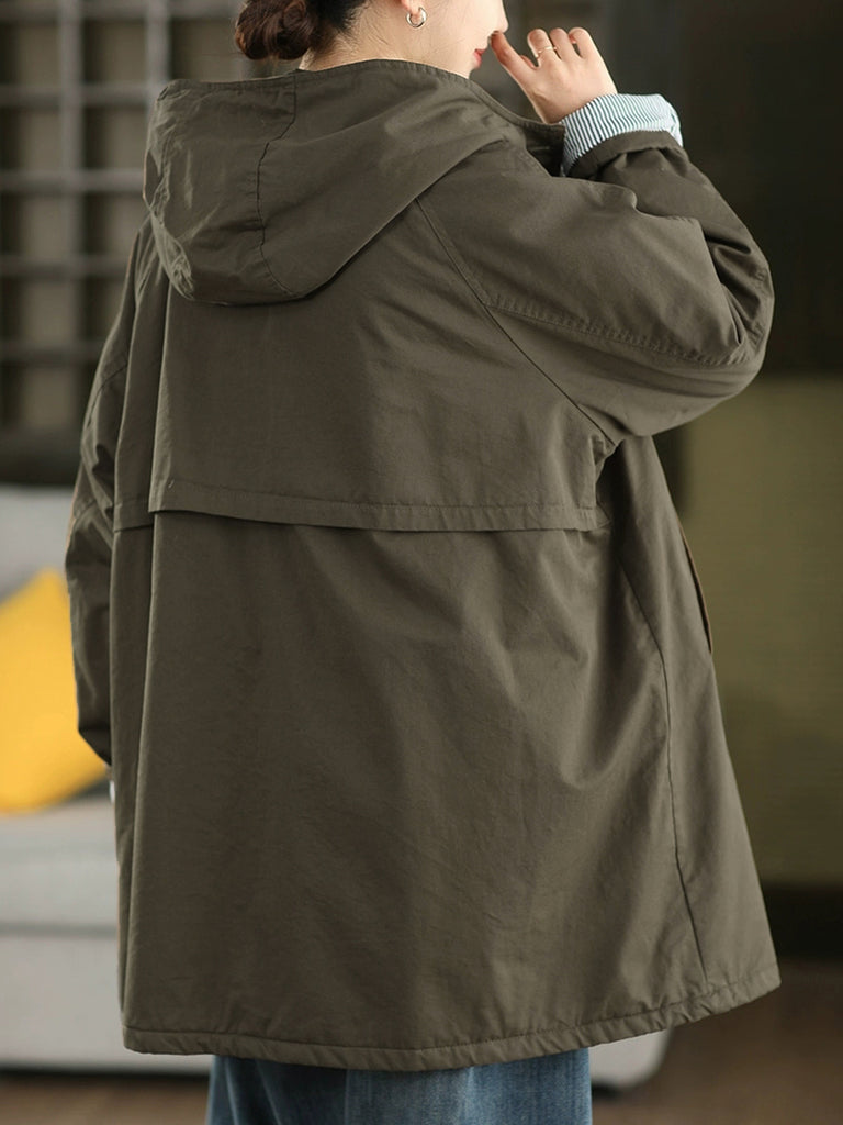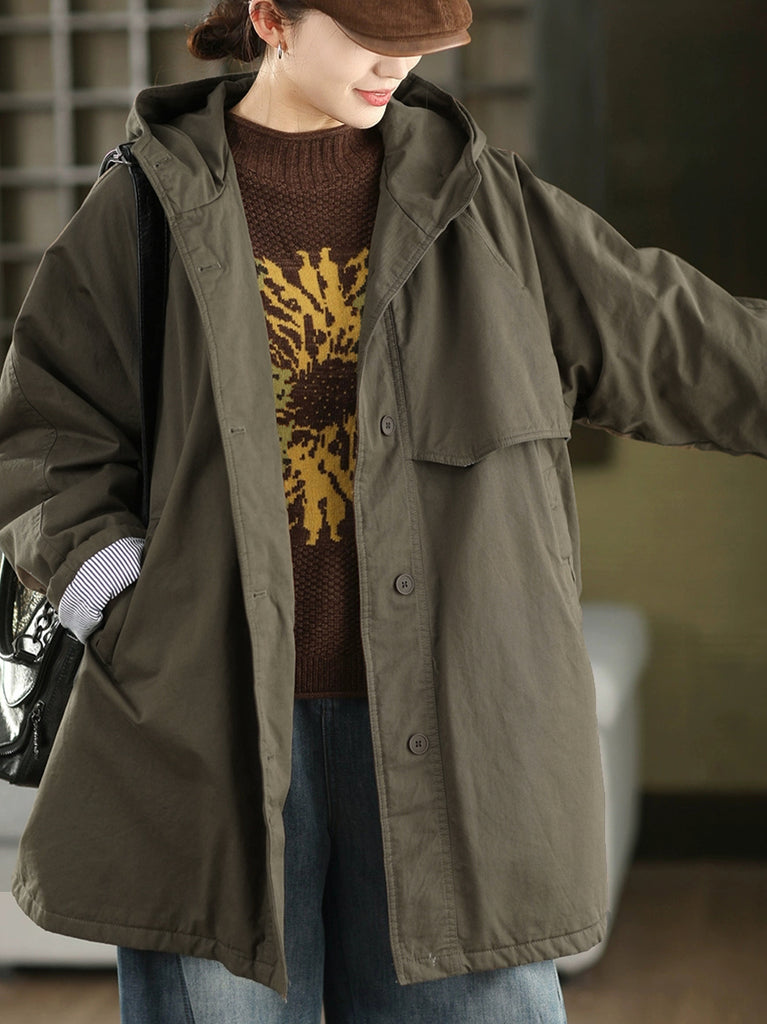 Manteau d'hiver pour femme, couleur unie, 100 % coton, matelassé et à capuche.