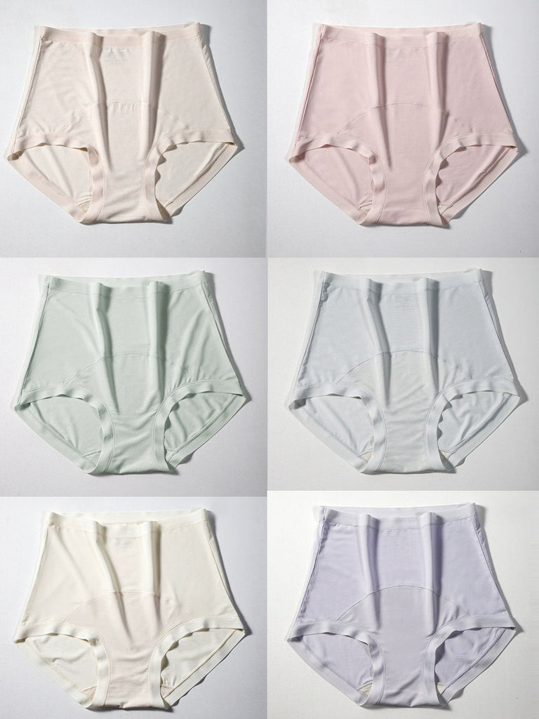 Lot de 6 sous-vêtements d'été taille haute pour femmes, couleur unie