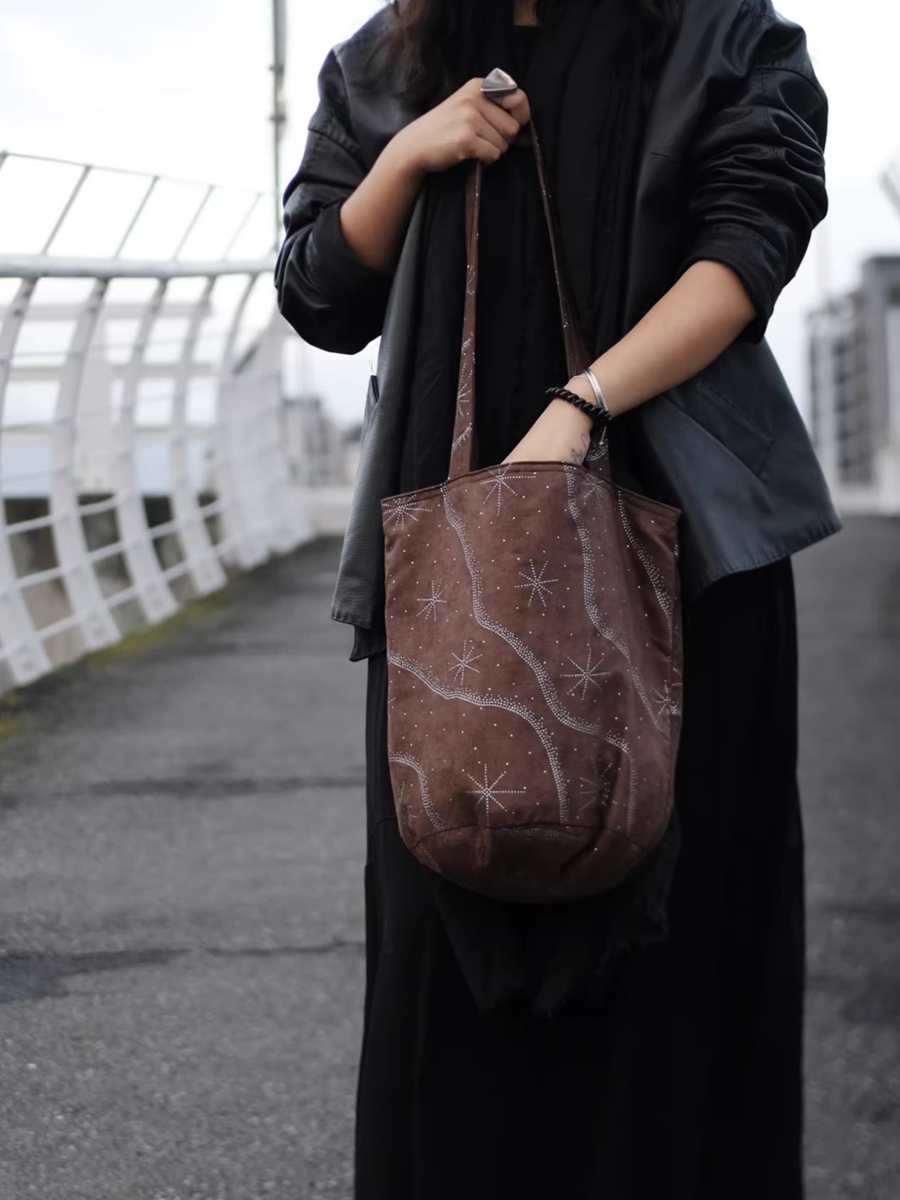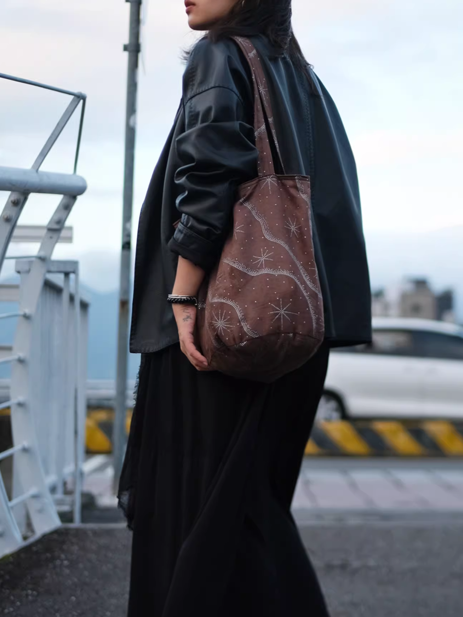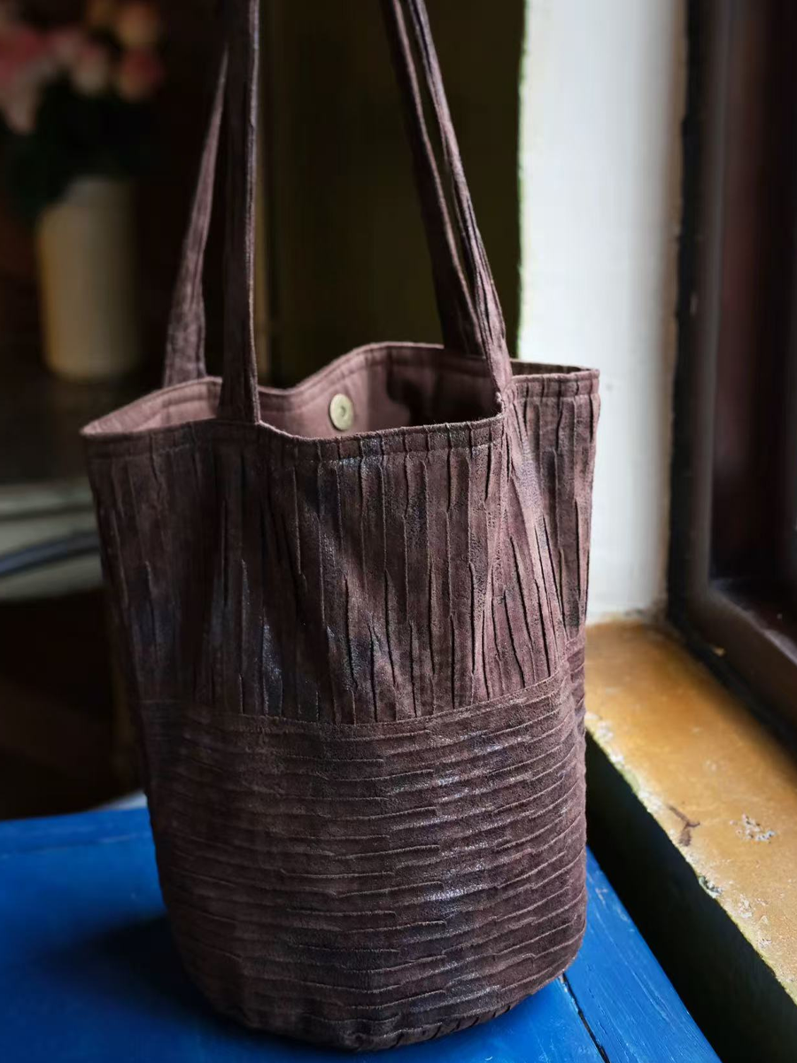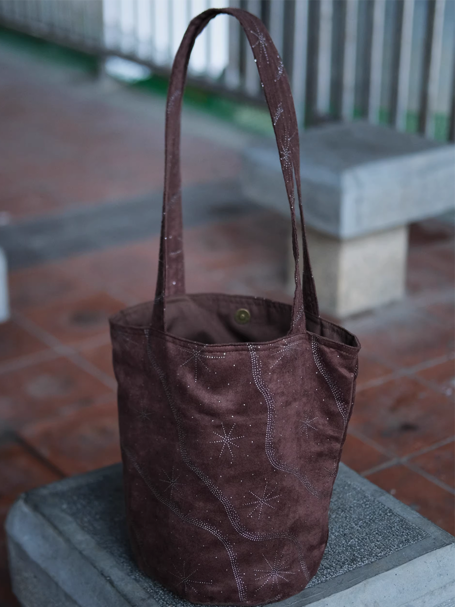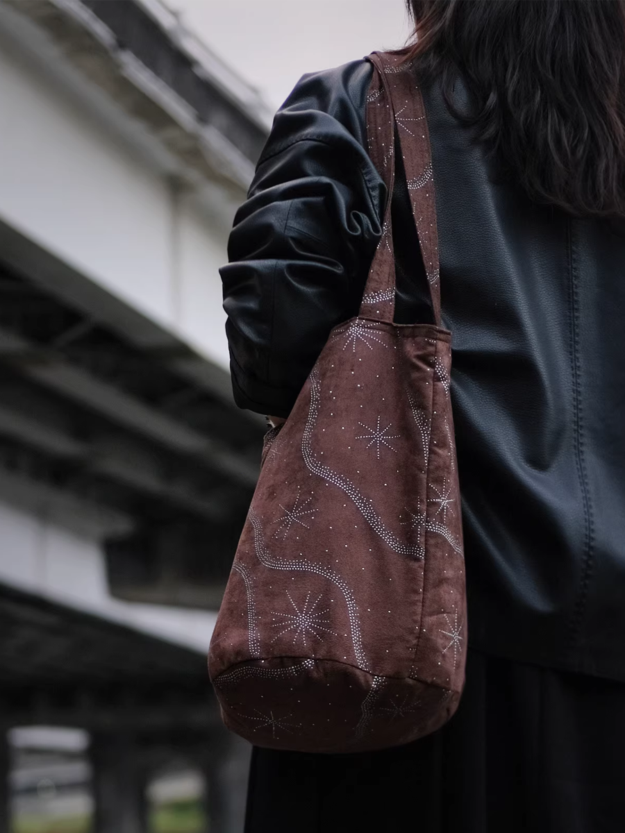 Sac seau rétro en faux daim moucheté et sequins métalliques
