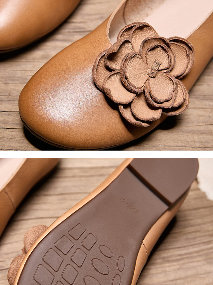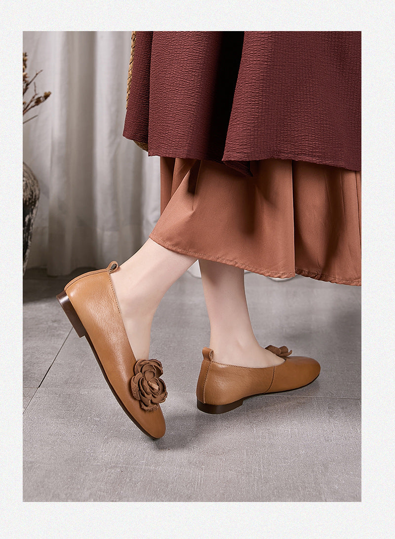 Chaussures à talons bas en cuir fendu à motif floral artistique pour femmes