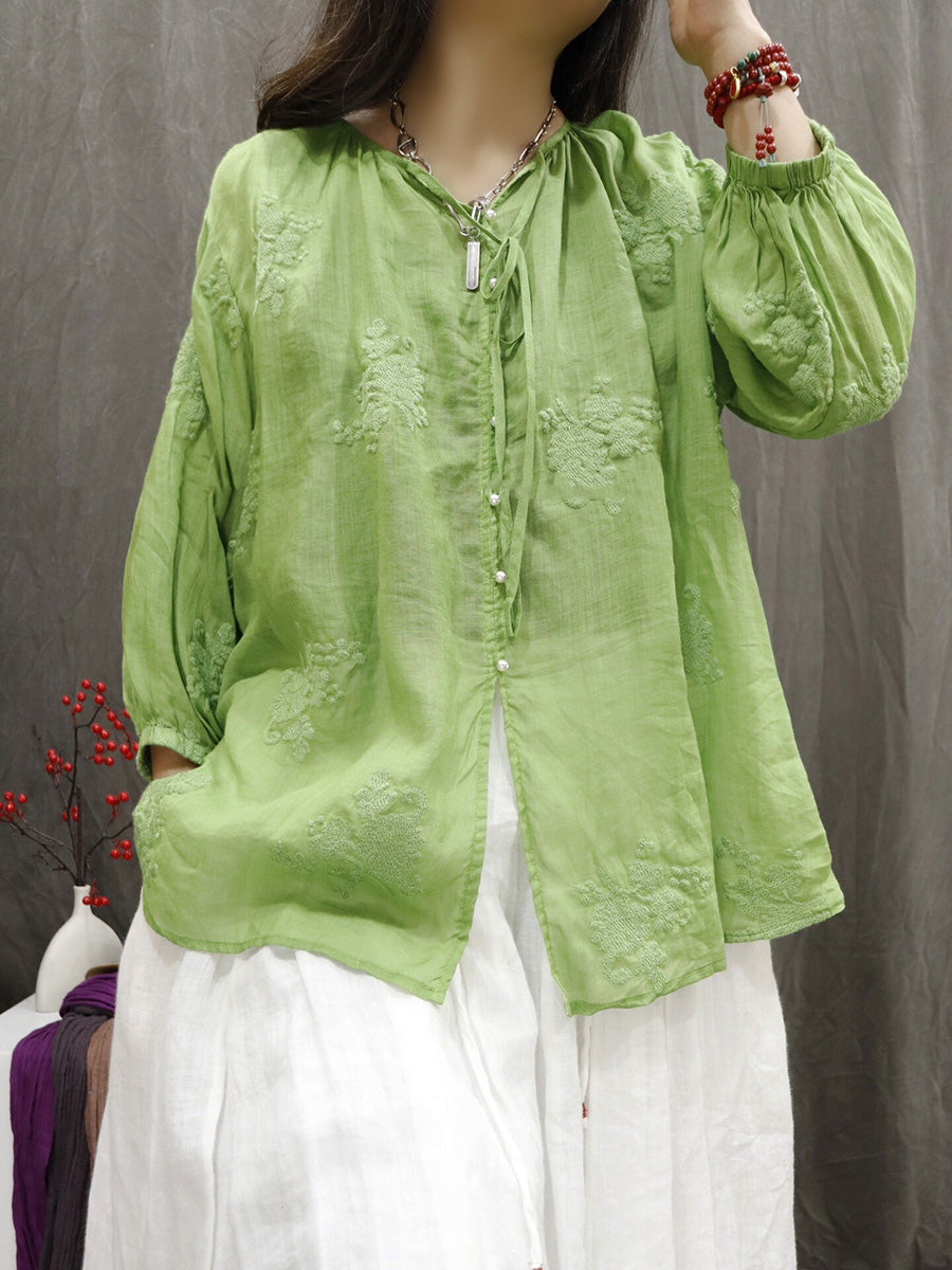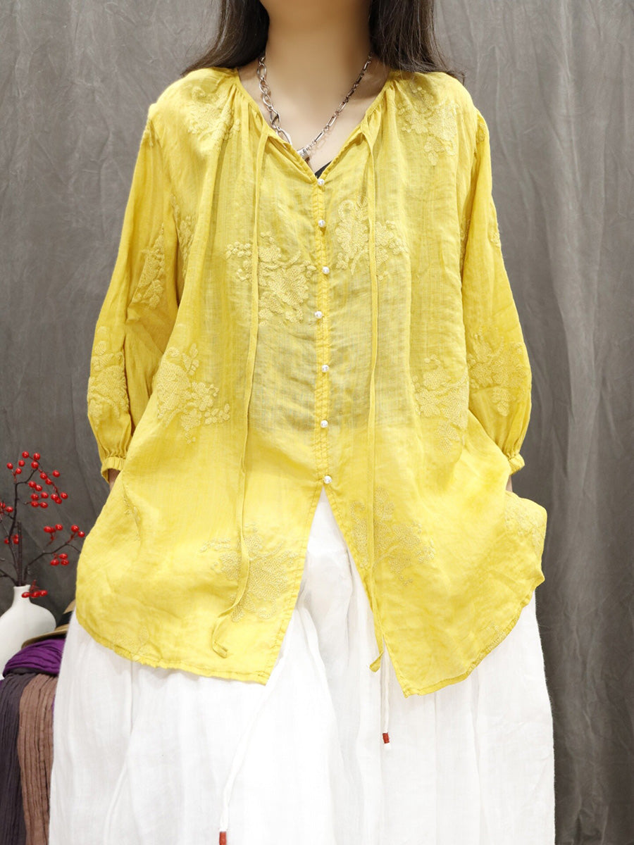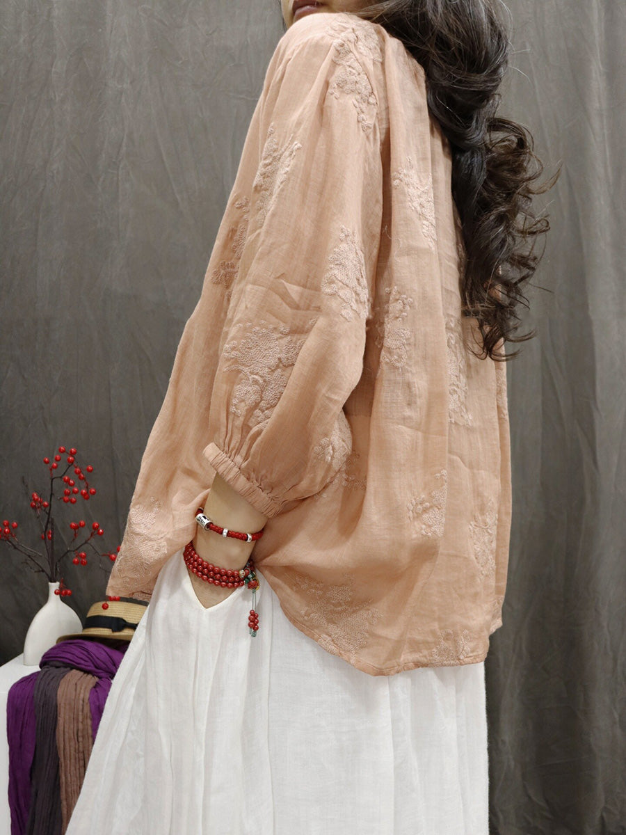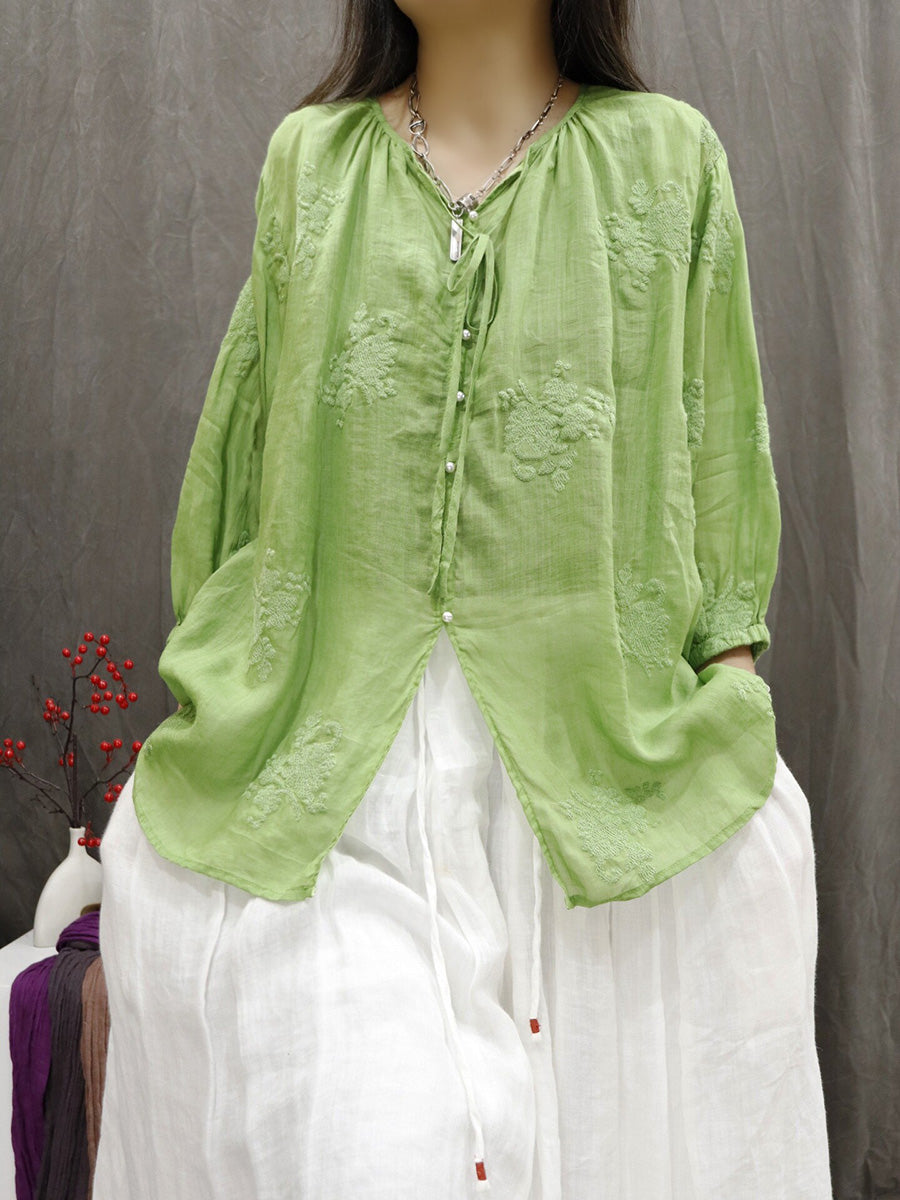 Chemisier d'été artistique pour femme, col en V, couleur unie, 100 % ramie