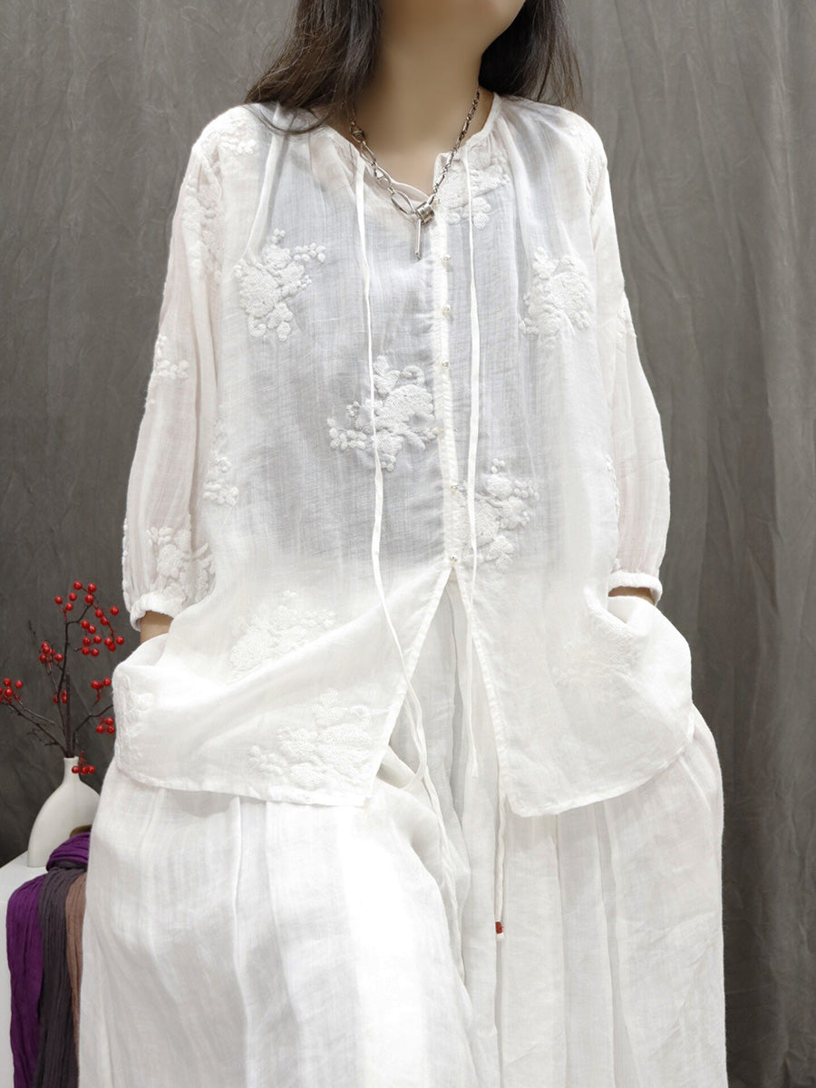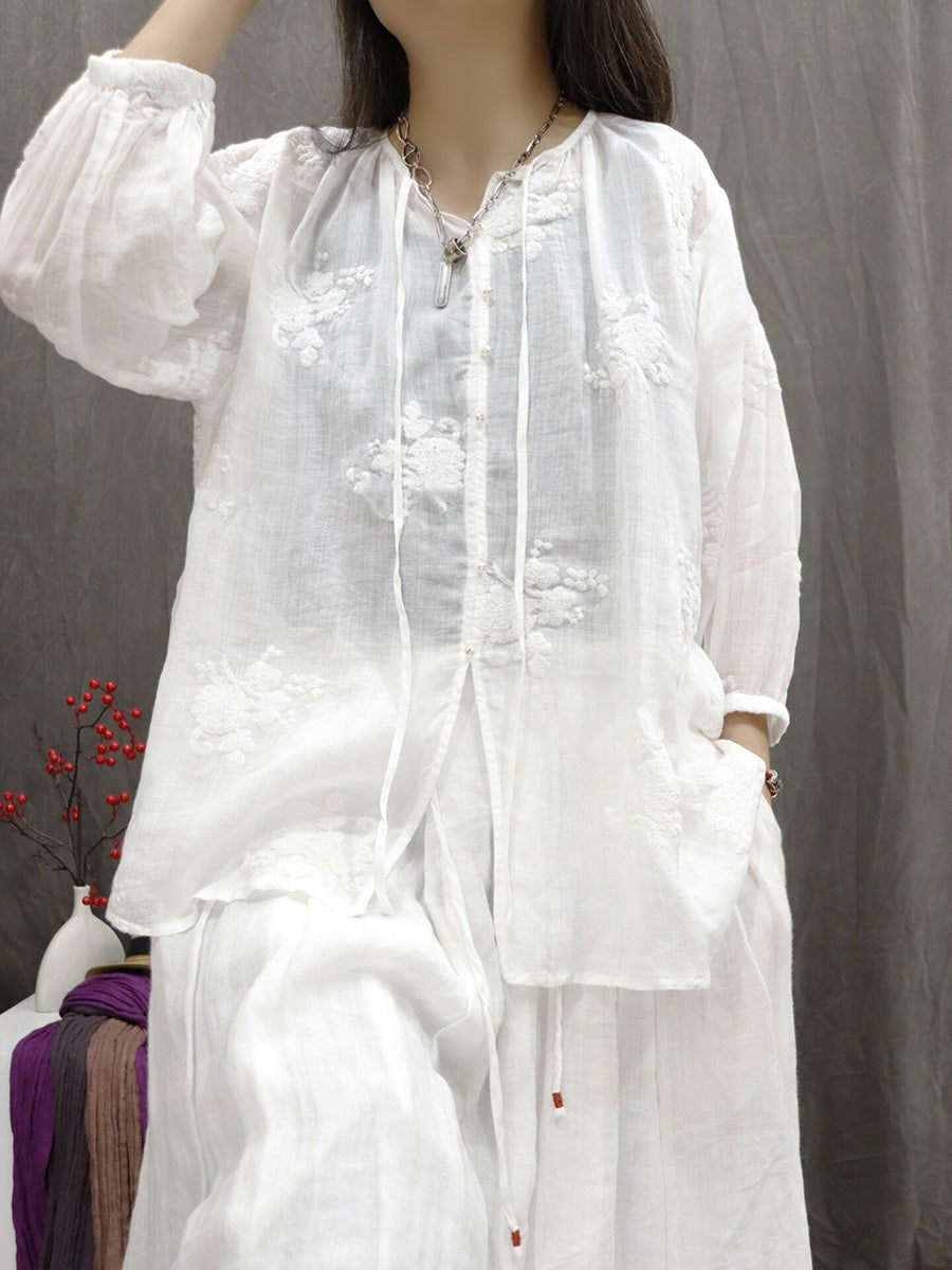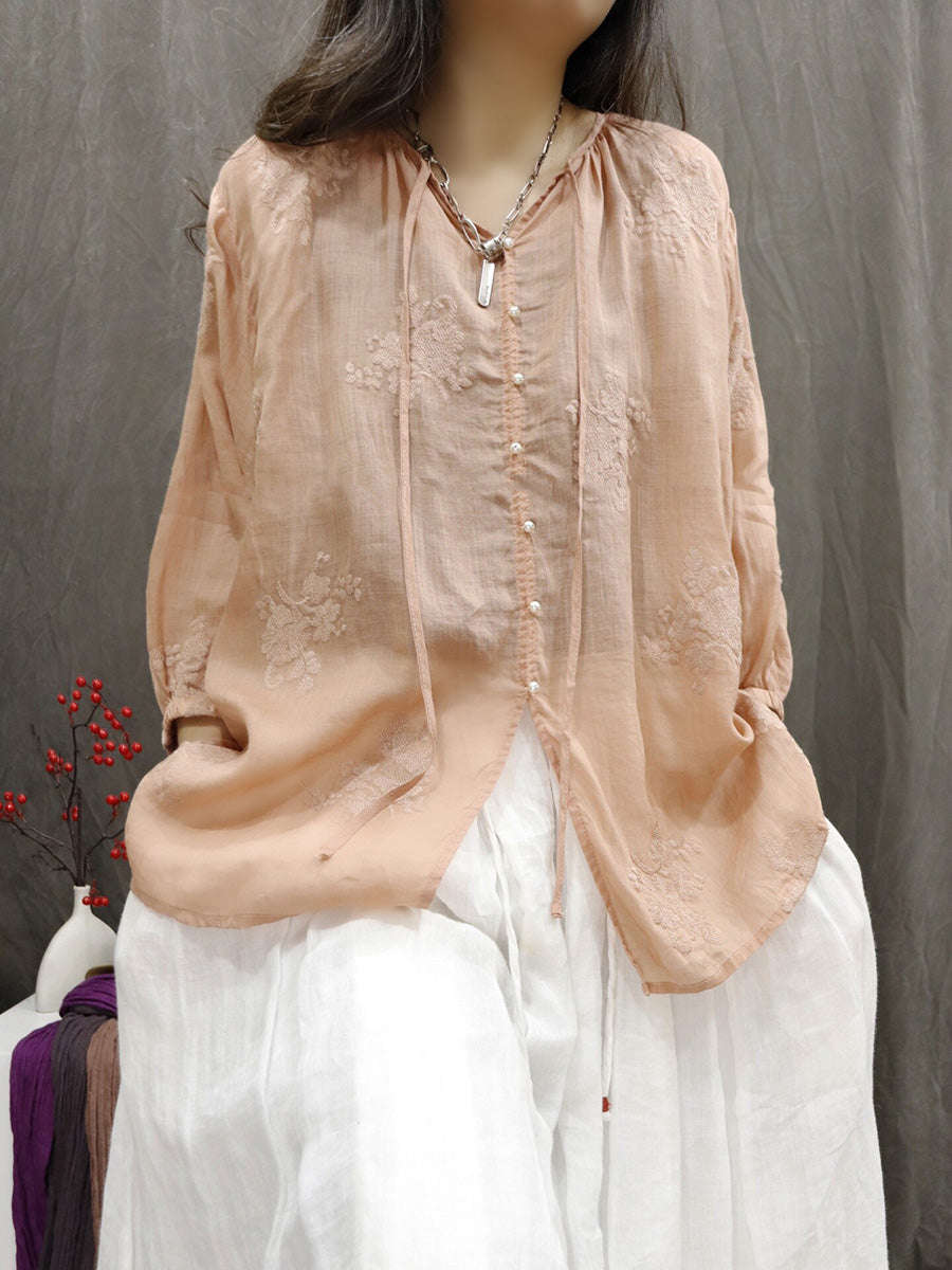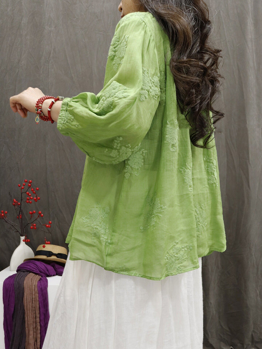 Chemisier d'été artistique pour femme, col en V, couleur unie, 100 % ramie