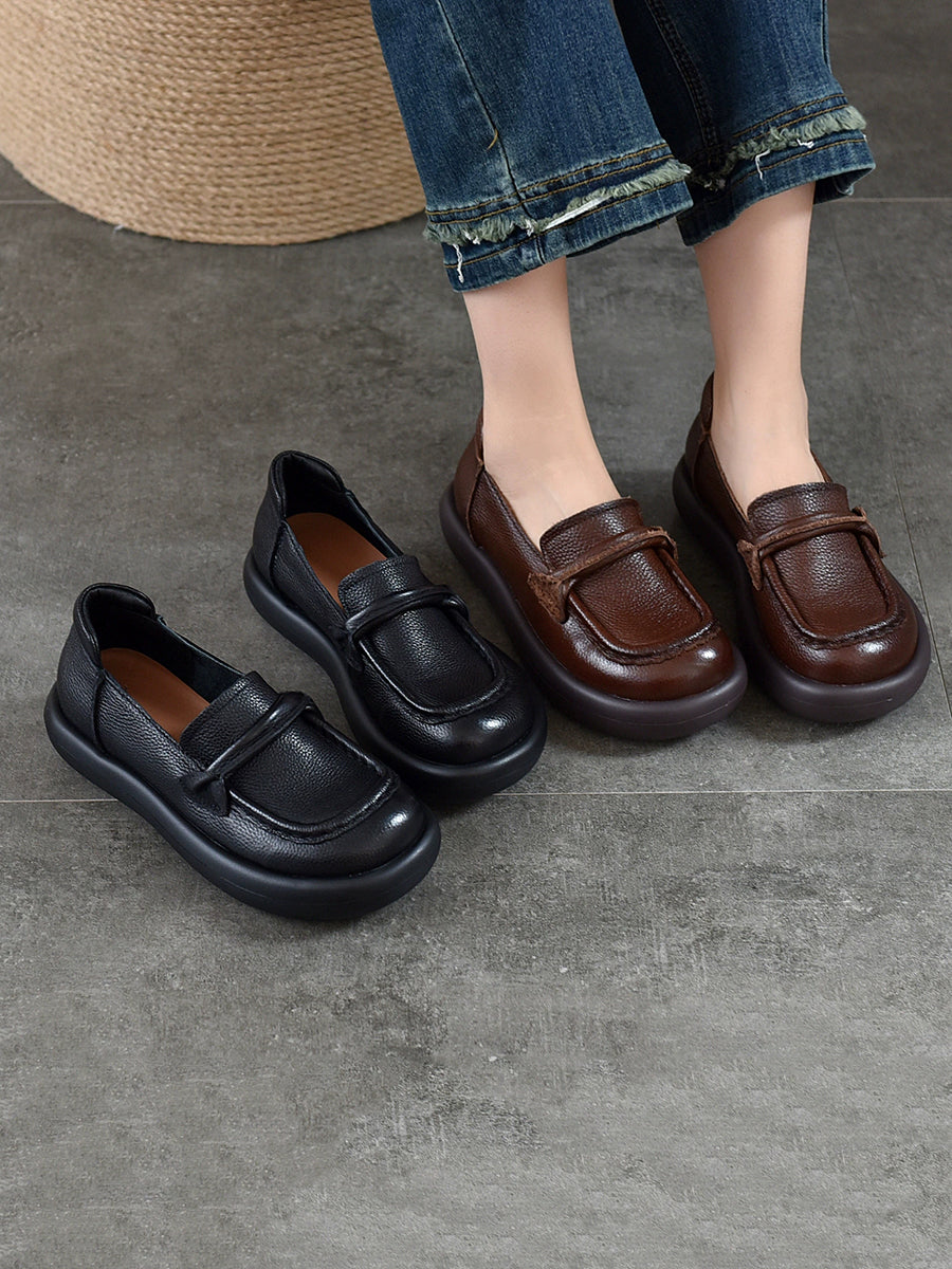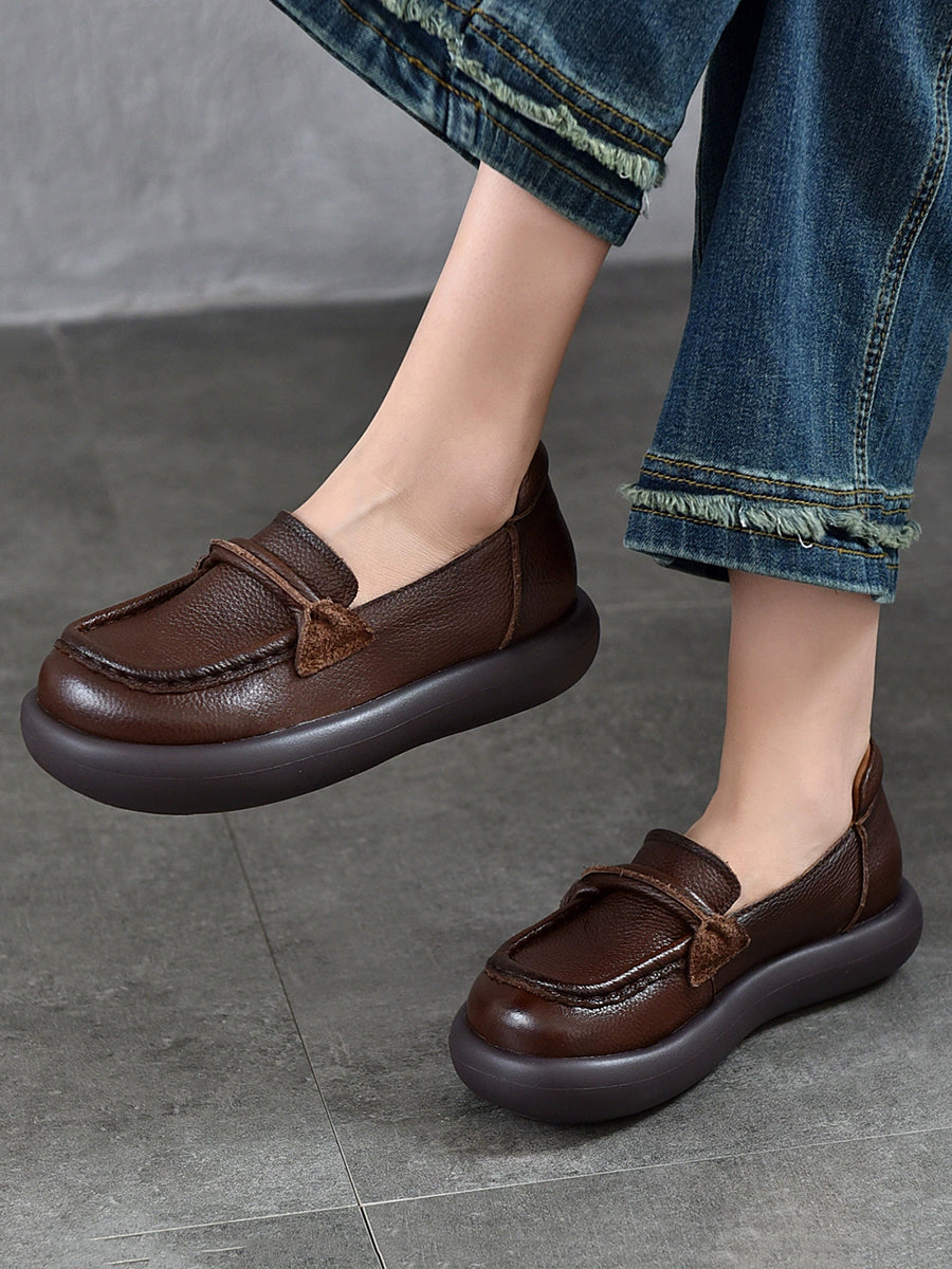 Chaussures plates décontractées de printemps pour femmes en cuir véritable