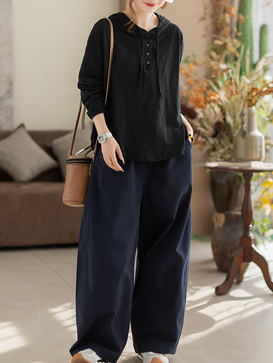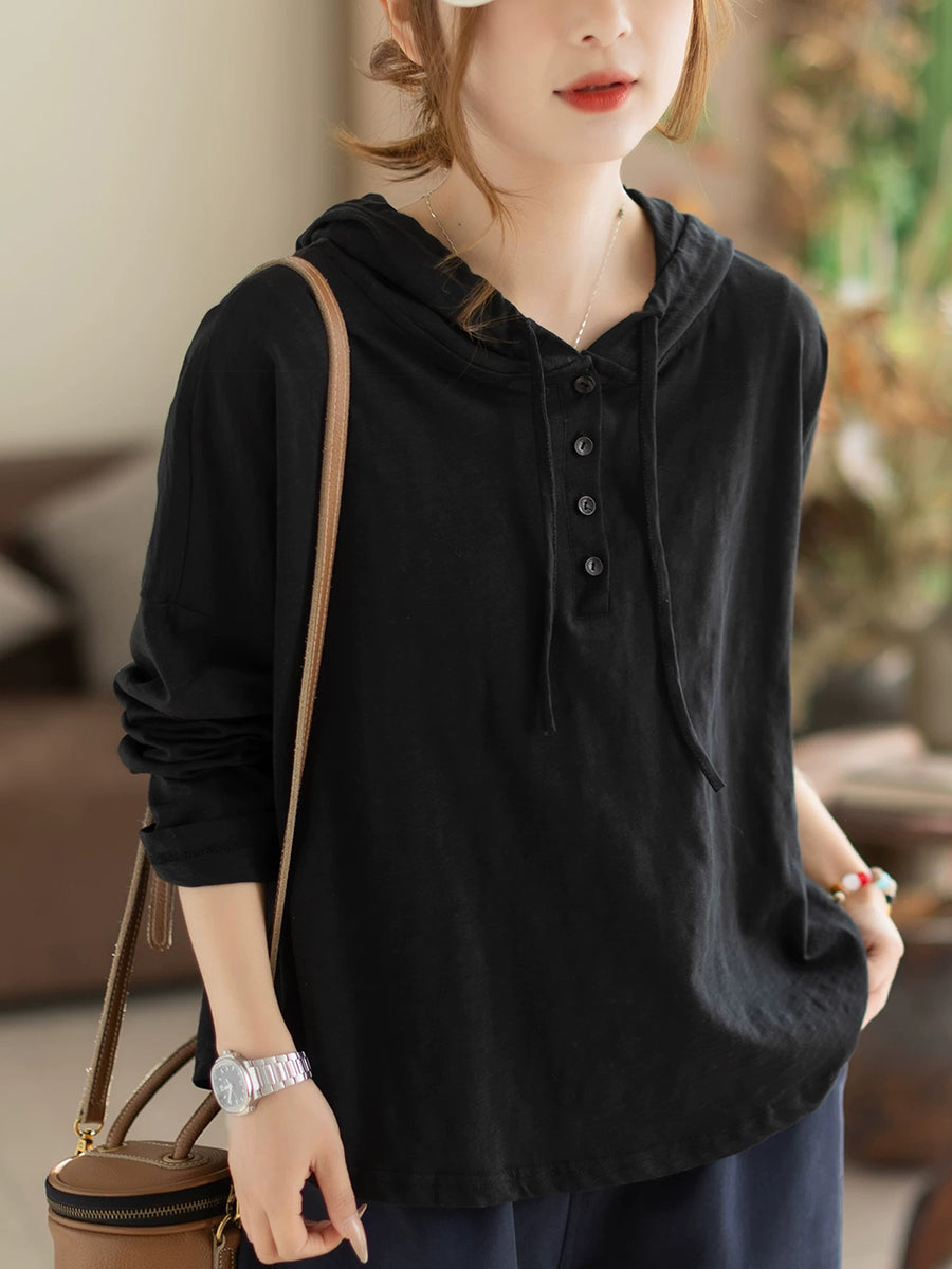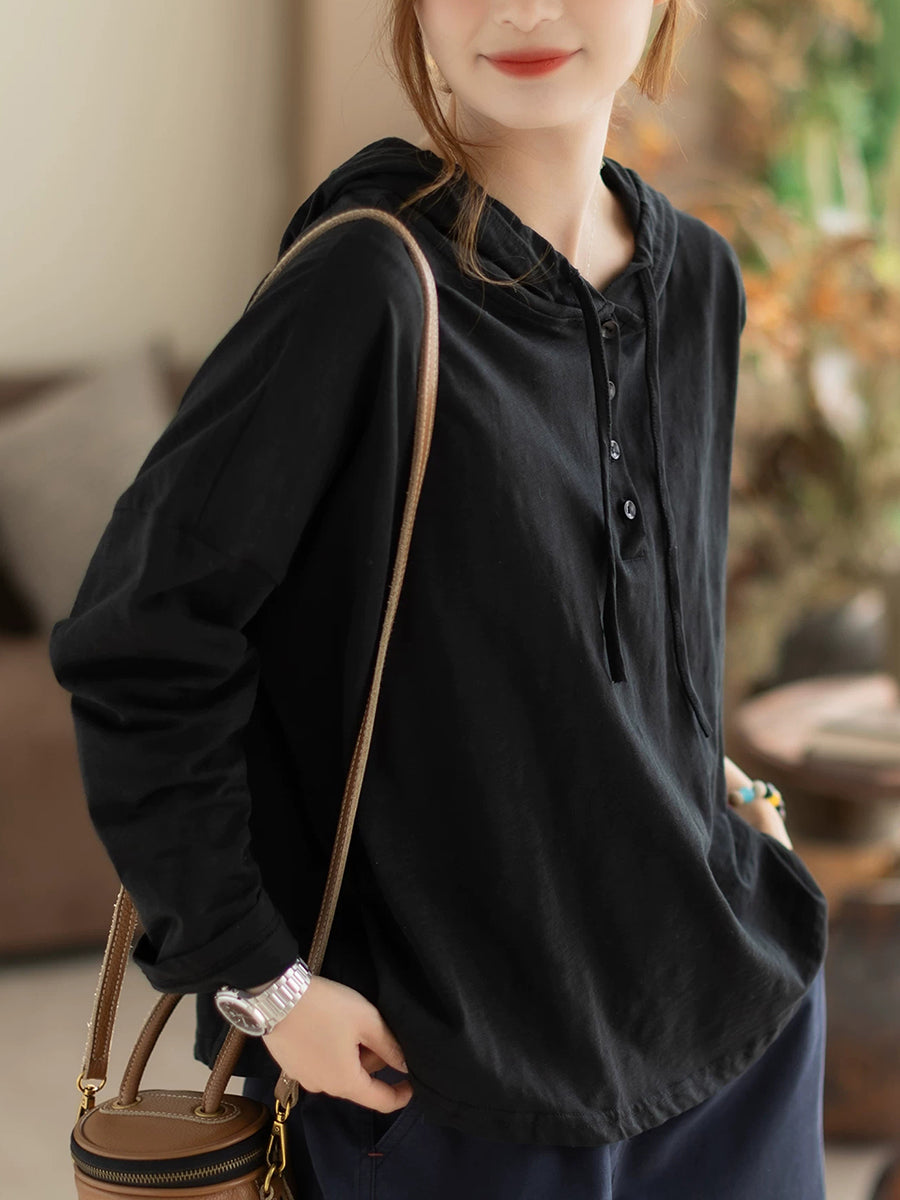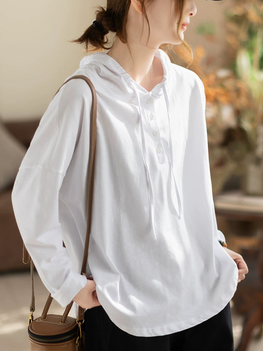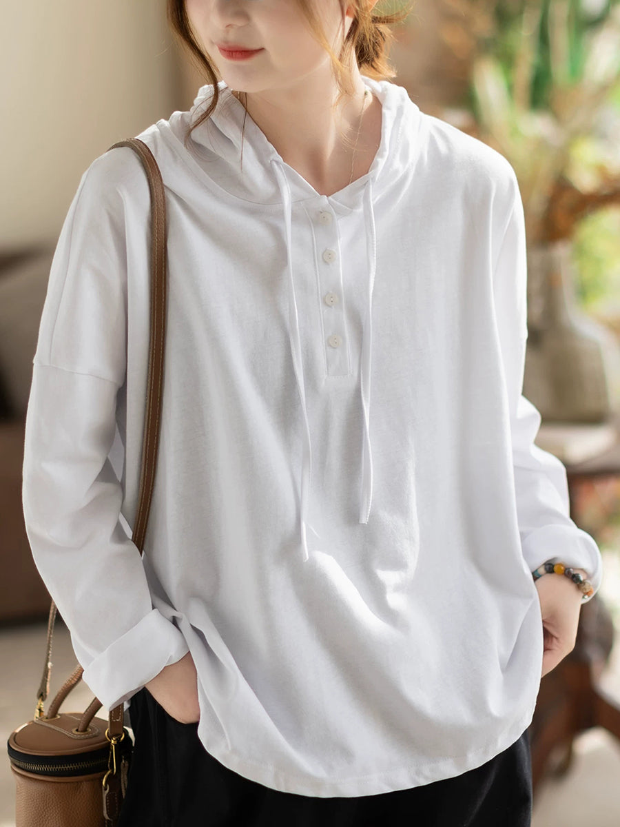 Sweat à capuche en coton uni, style décontracté printanier pour femme