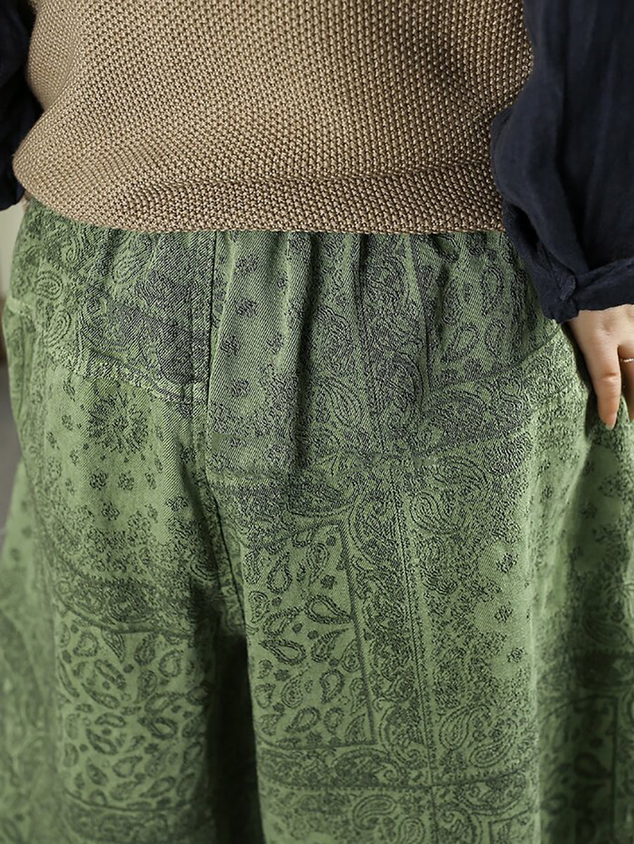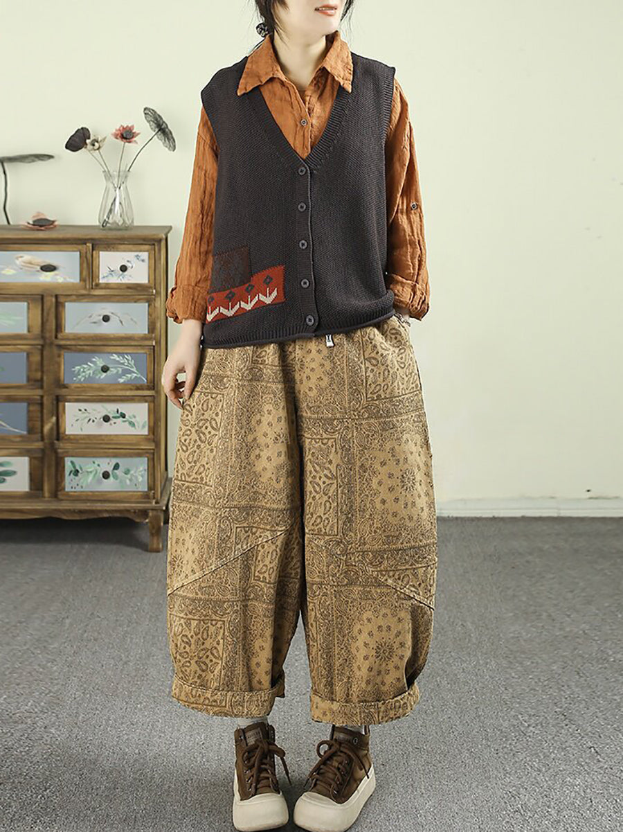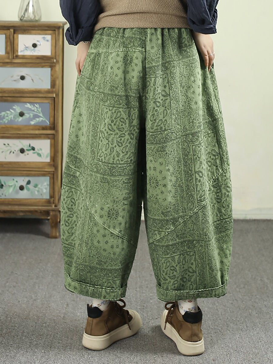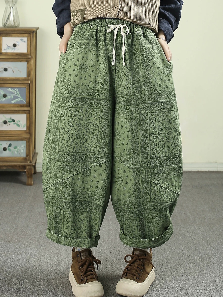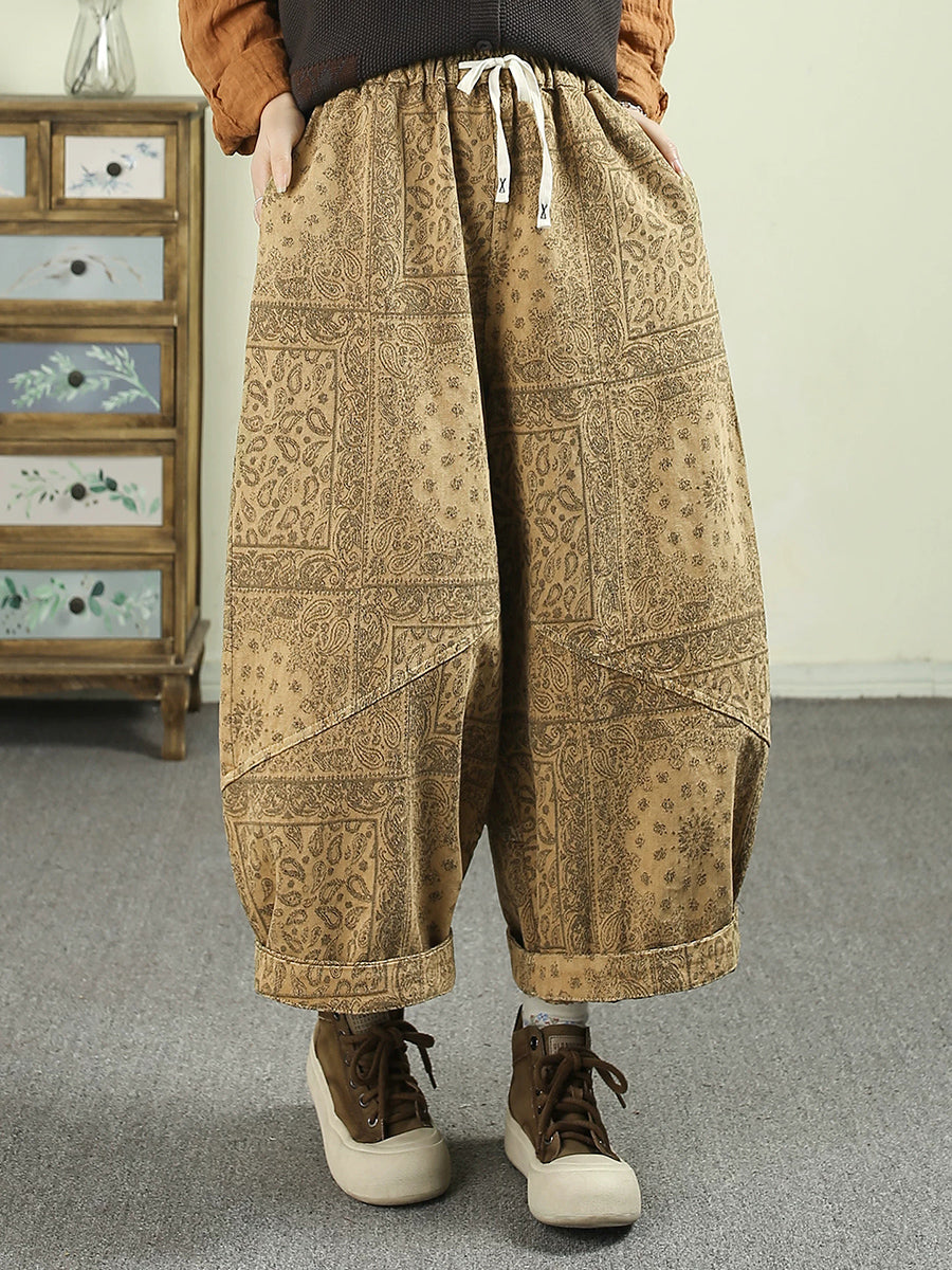 Pantalon harem en denim fleuri vintage printemps pour femme