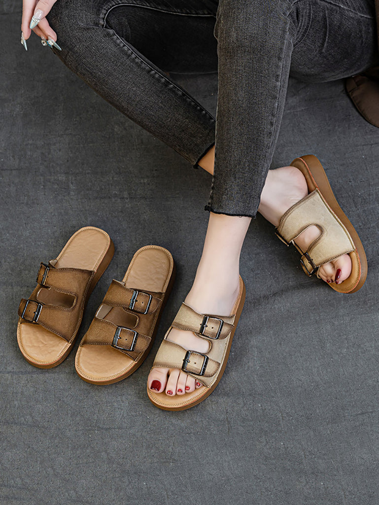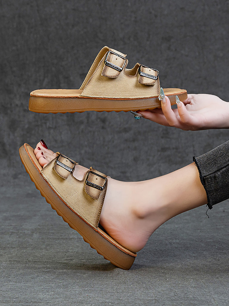 Chaussons plats décontractés d'été en cuir véritable pour femmes