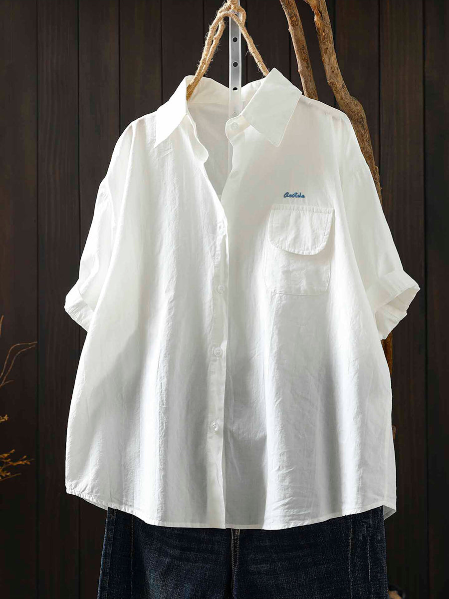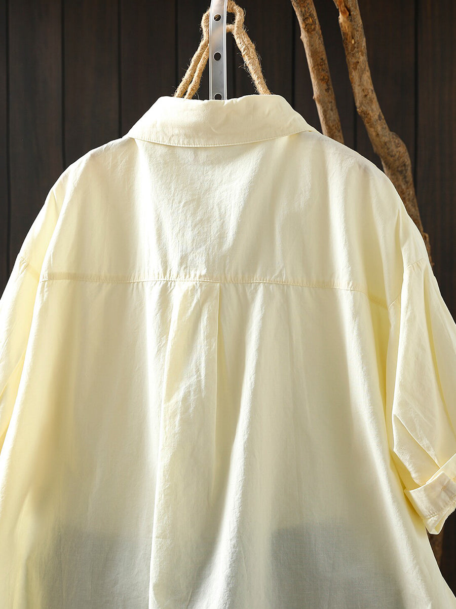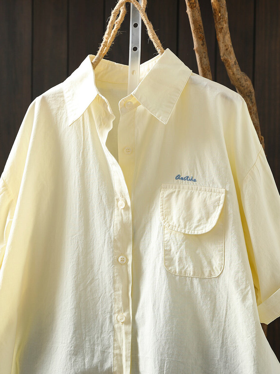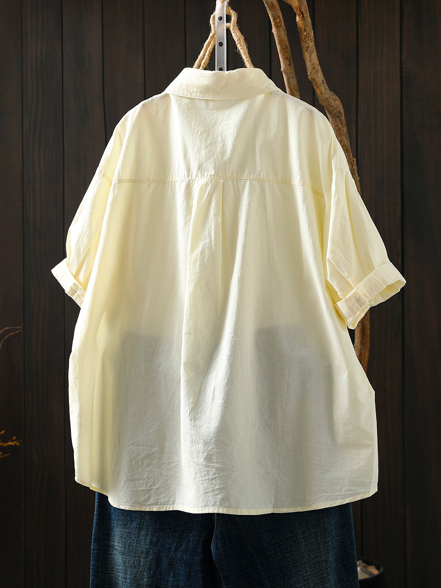 Chemise d'été décontractée pour femme, couleur unie, 100 % coton