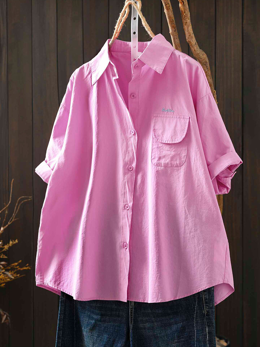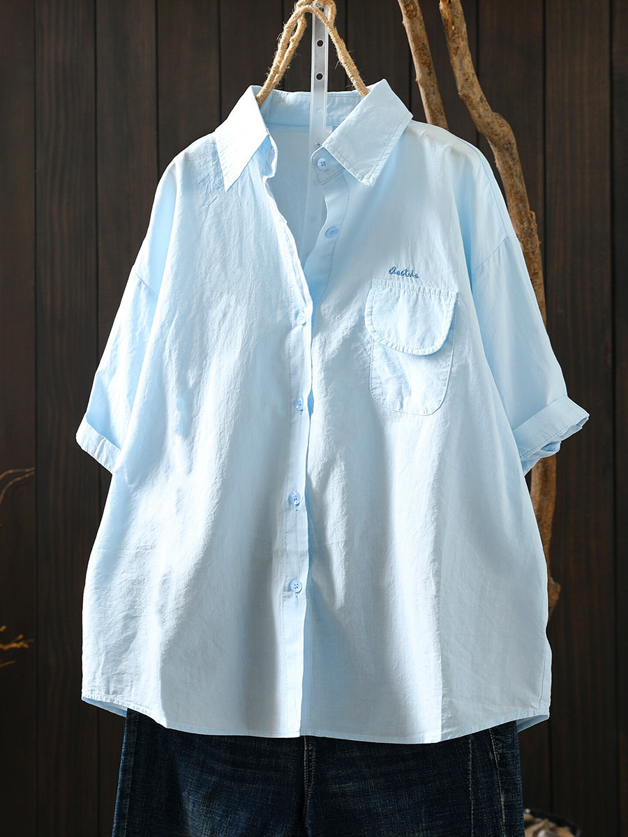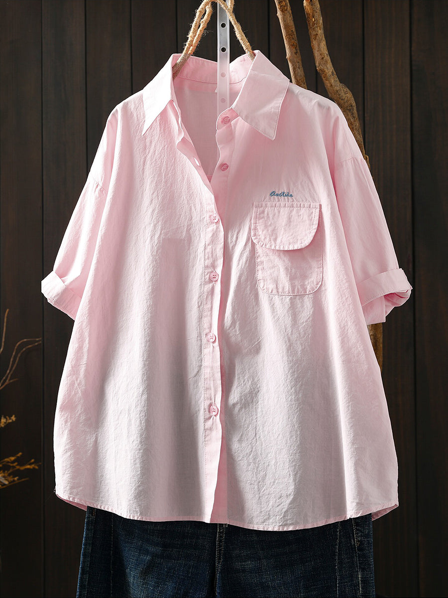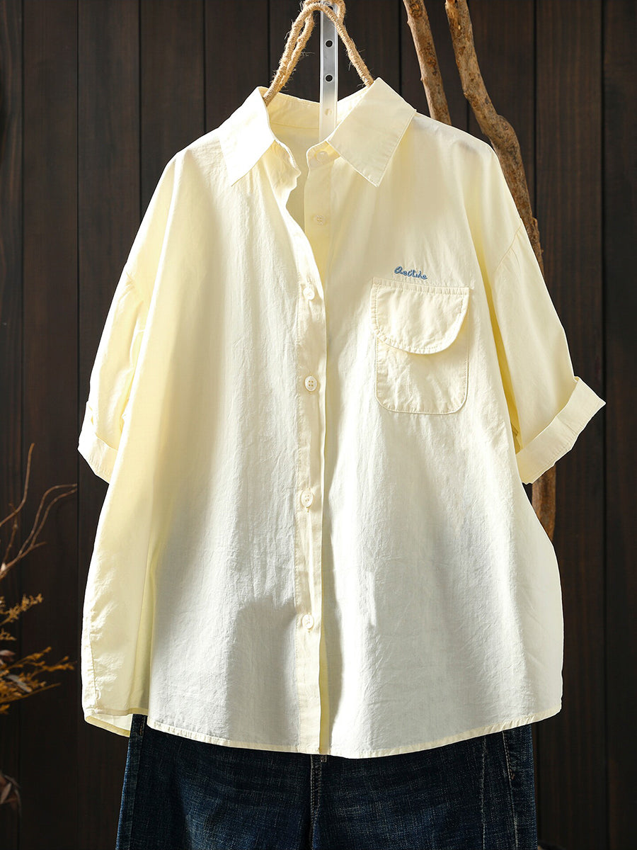 Chemise d'été décontractée pour femme, couleur unie, 100 % coton