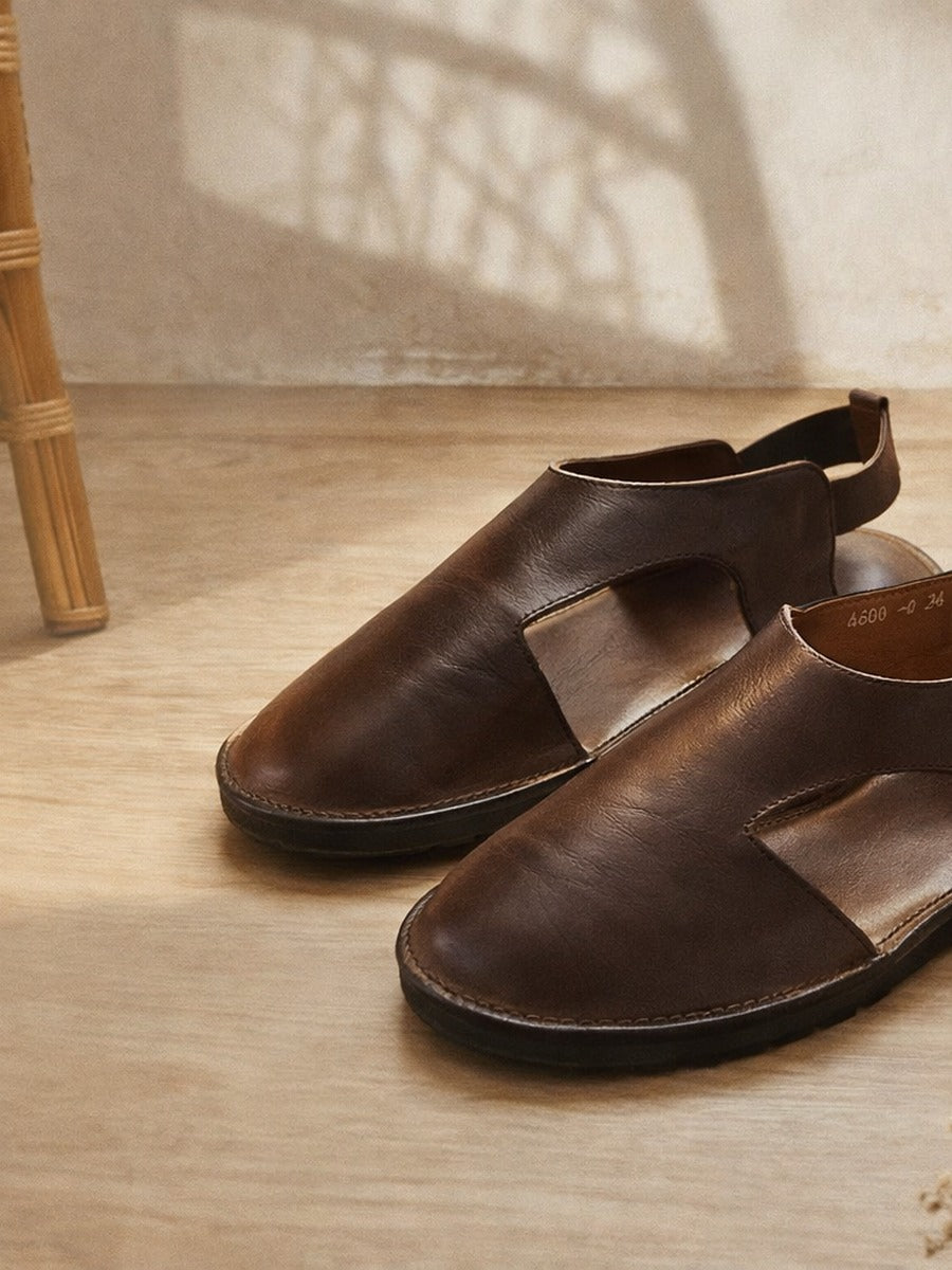 Chaussures vintage en cuir véritable, fabriquées à la main avec des finitions artisanales. Confortables et respirantes pour un usage quotidien.