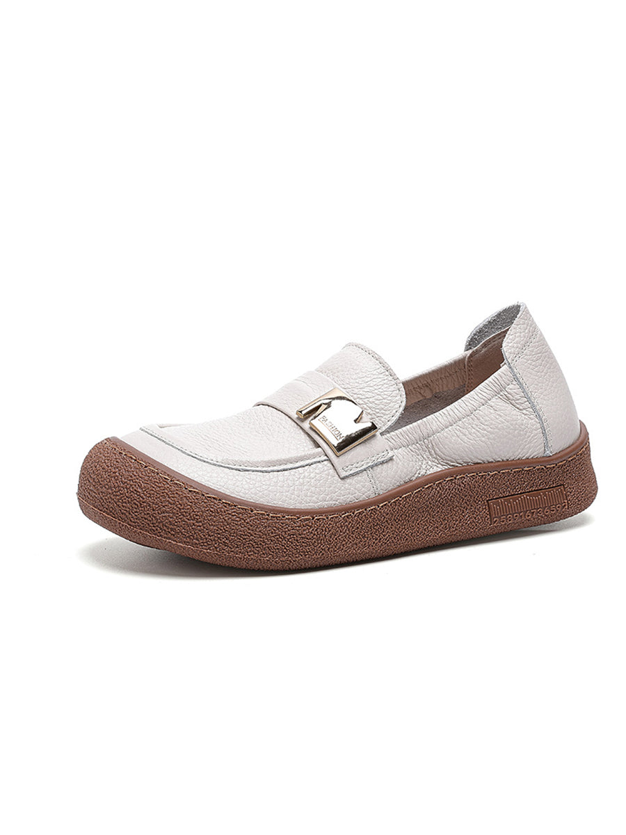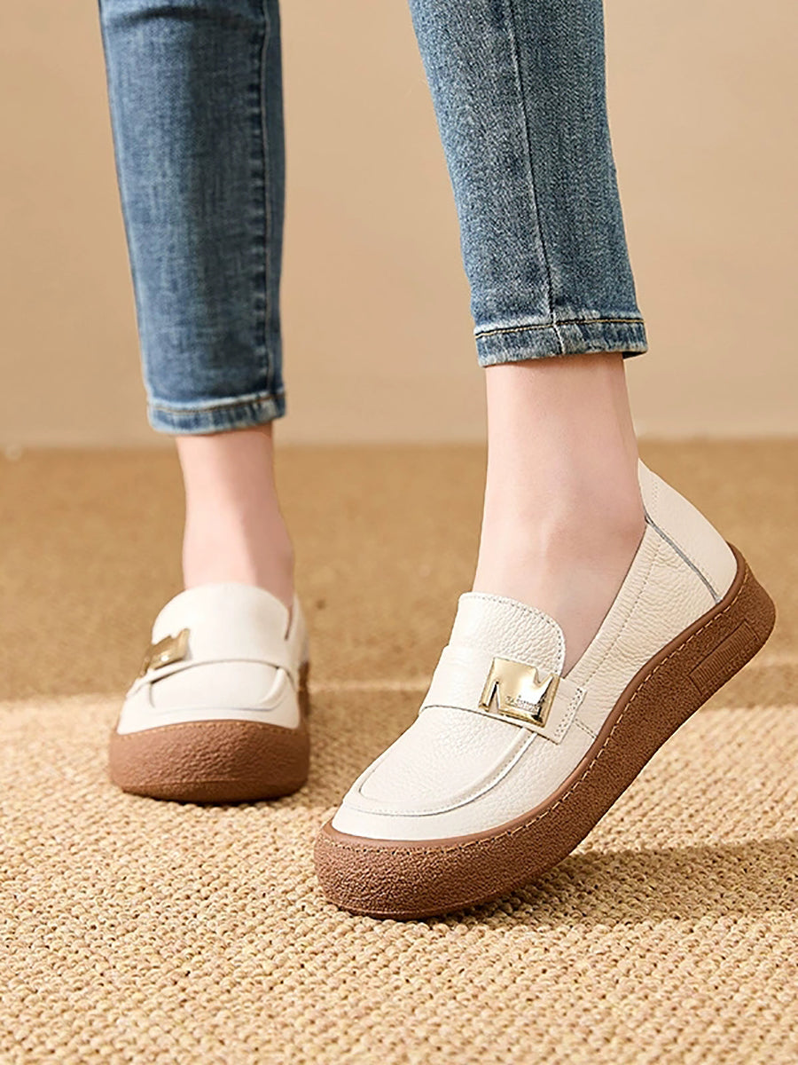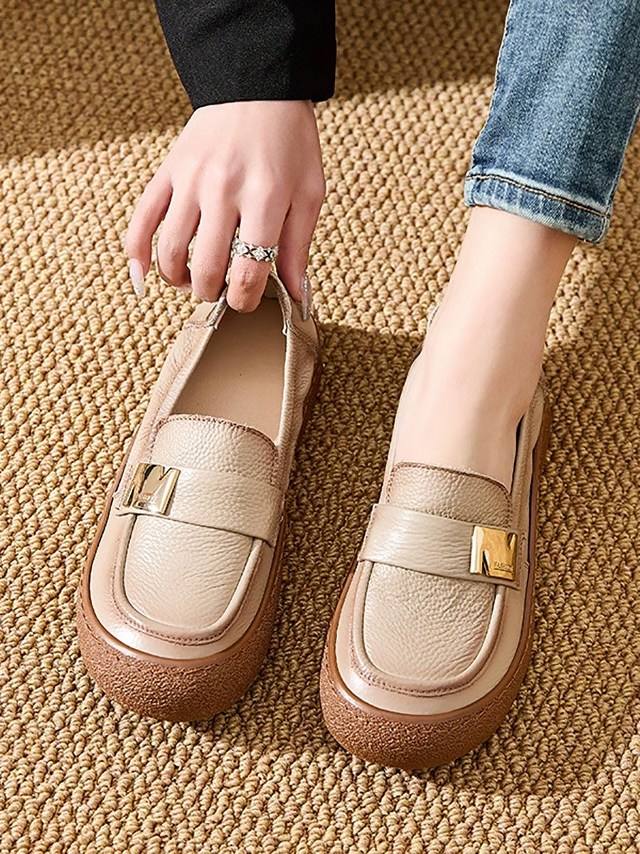 Chaussures plates vintage pour femmes en cuir véritable, style printemps