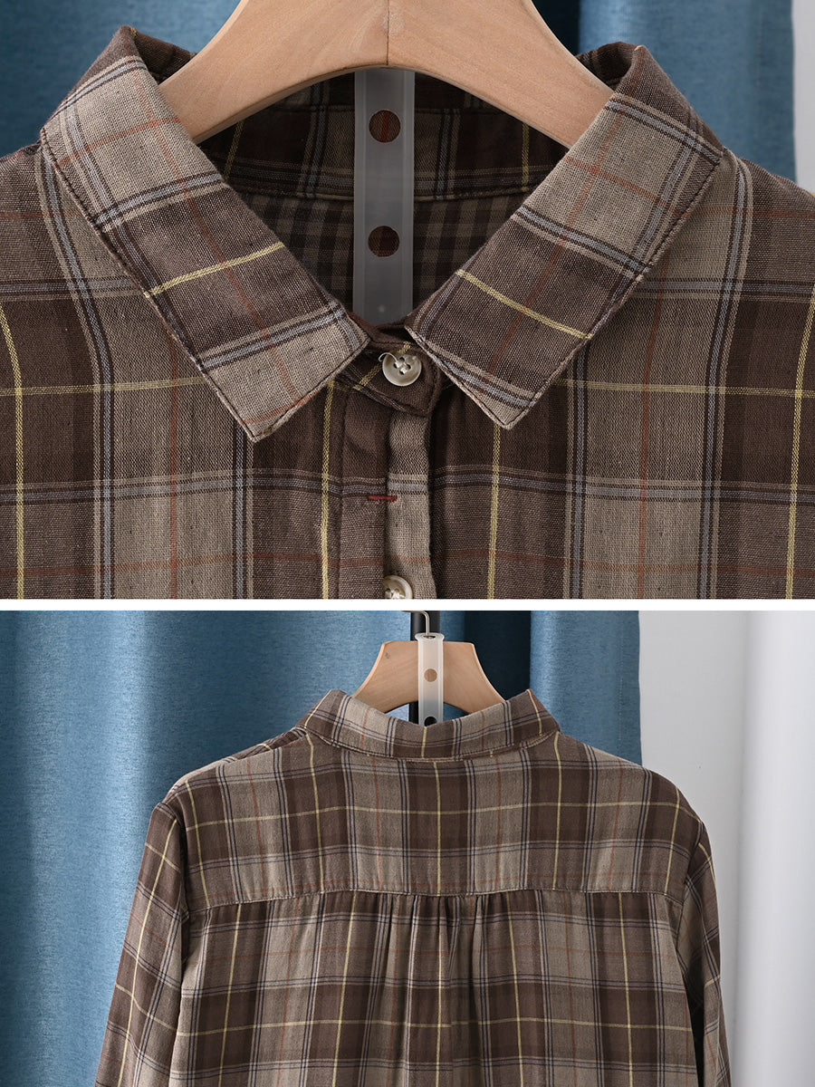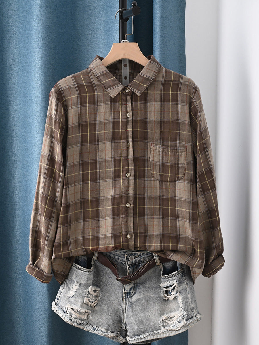 חולצת אביב משובצת 100% כותנה לנשים בסגנון אומנותי