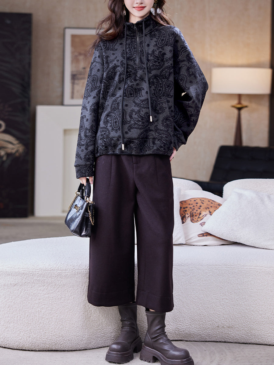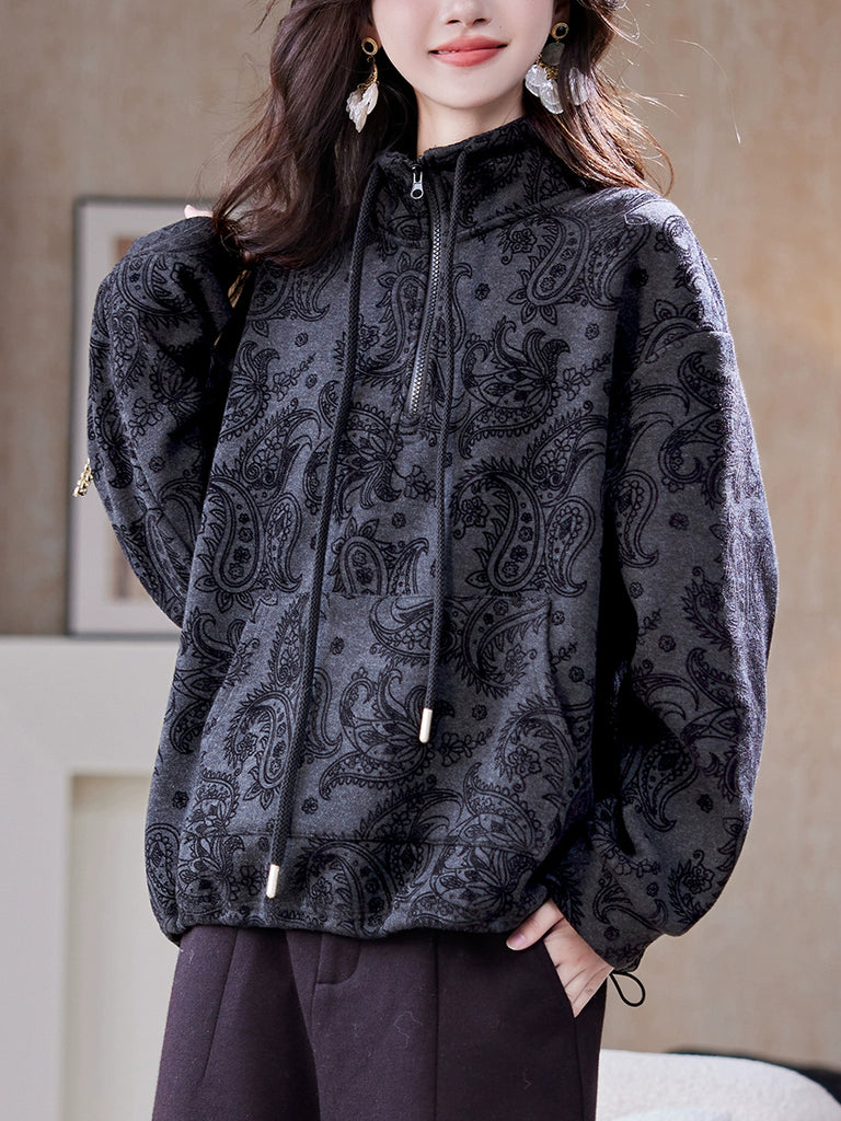 חולצת חורף רטרו עם בטנת פליז לנשים עם צווארון עומד