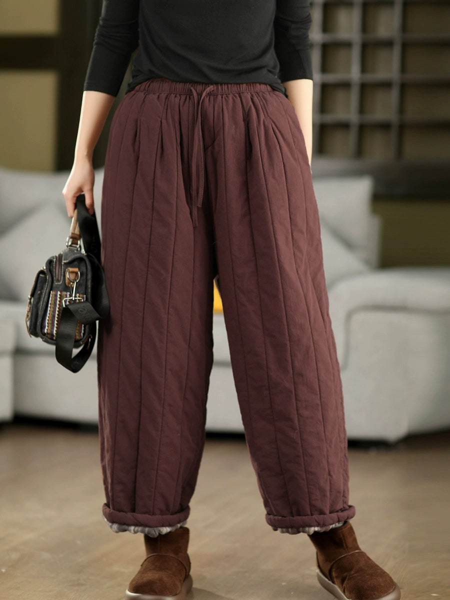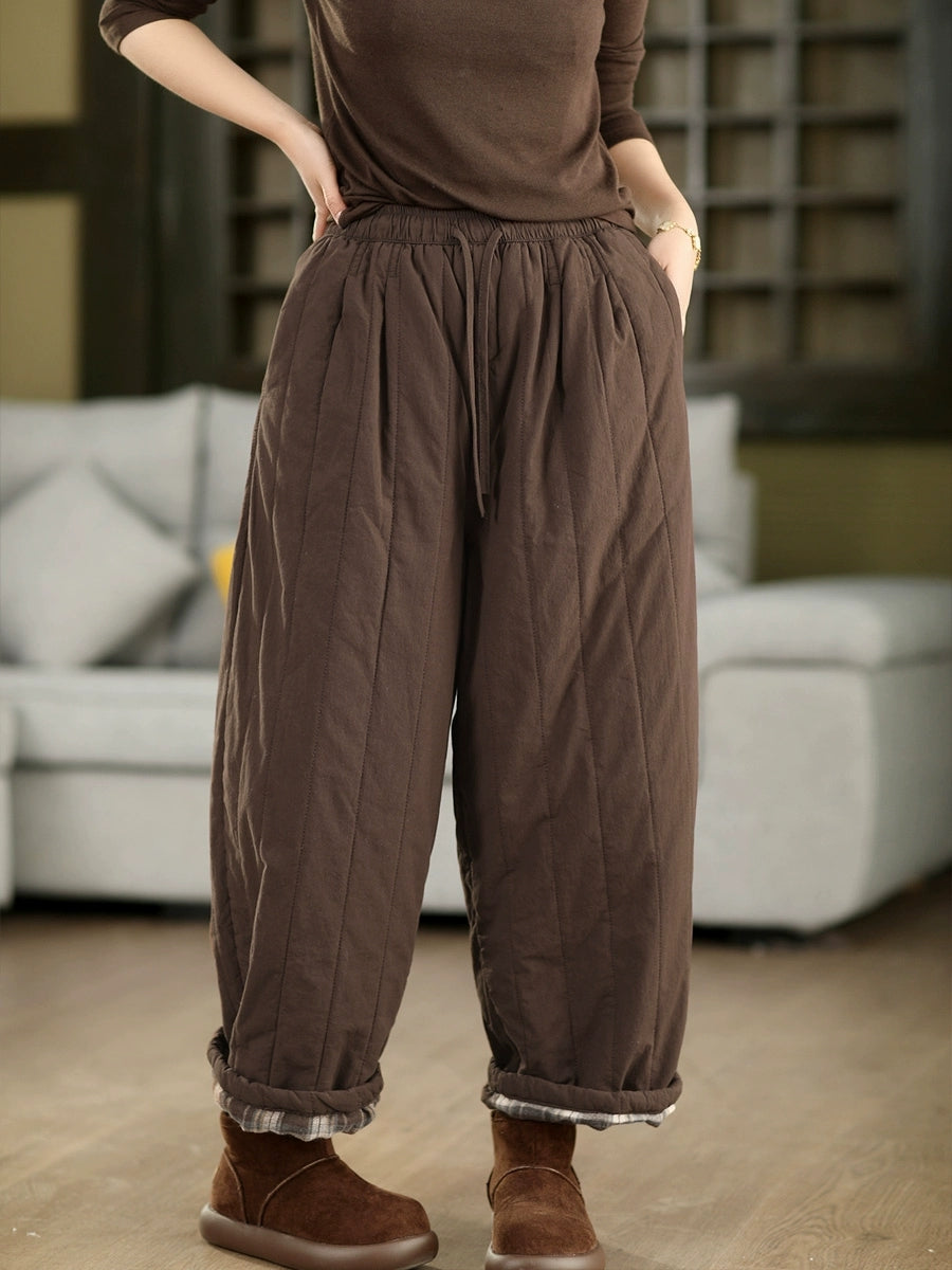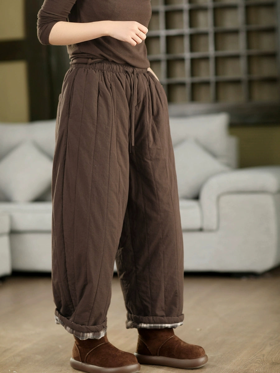 מכנסי חורף רטרו בצבע טהור לנשים מרופדים 100% כותנה