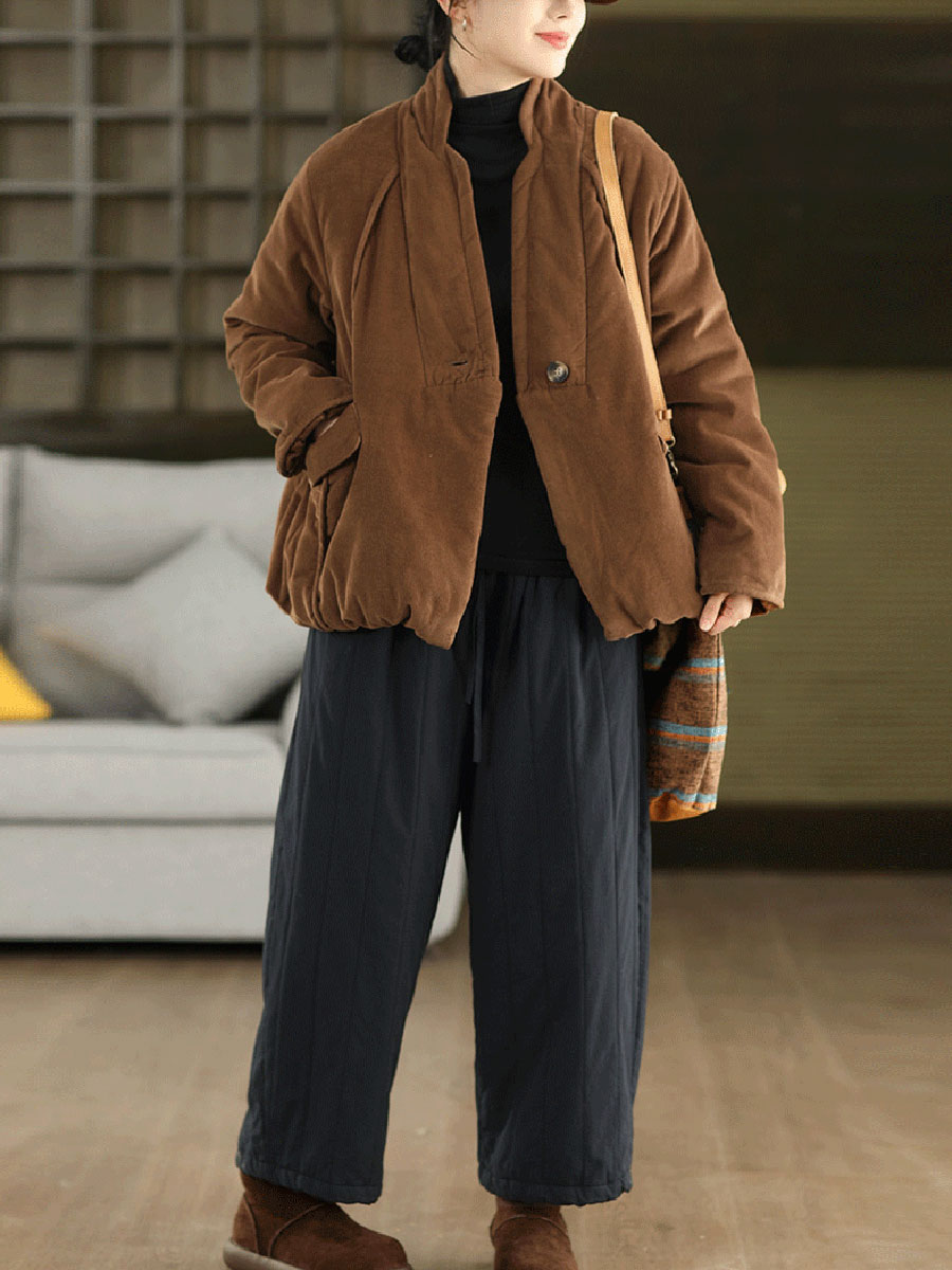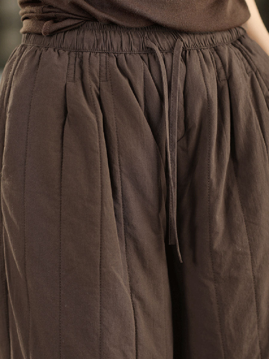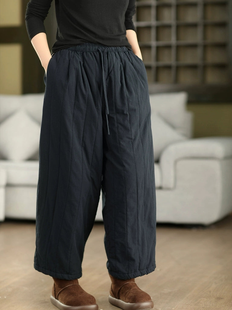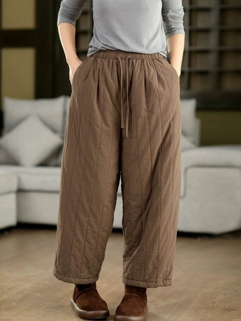 מכנסי חורף רטרו בצבע טהור לנשים מרופדים 100% כותנה