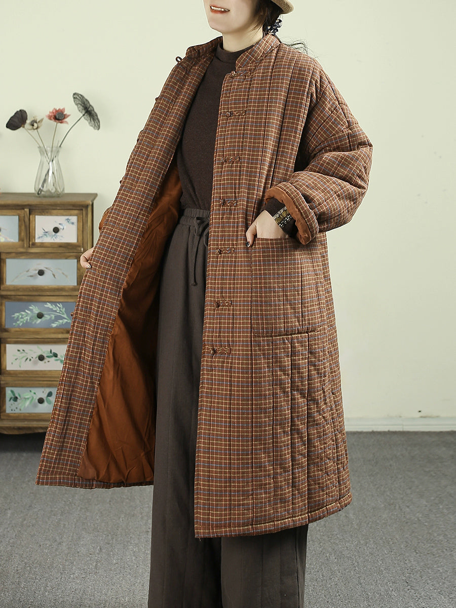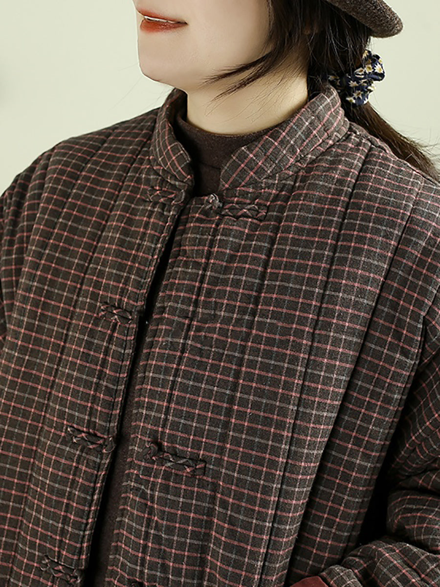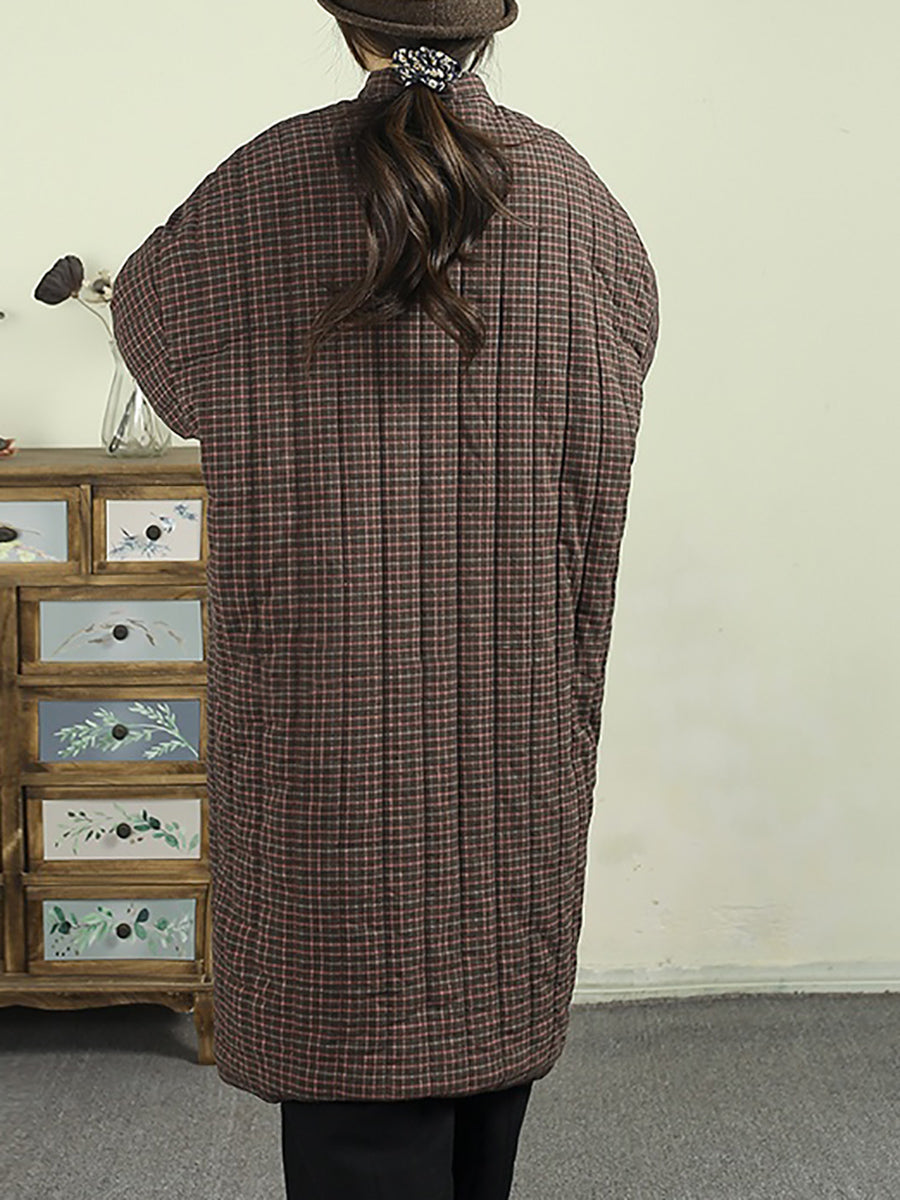מעיל מרופד עם צווארון עומד וצווארון משובץ לחורף לנשים