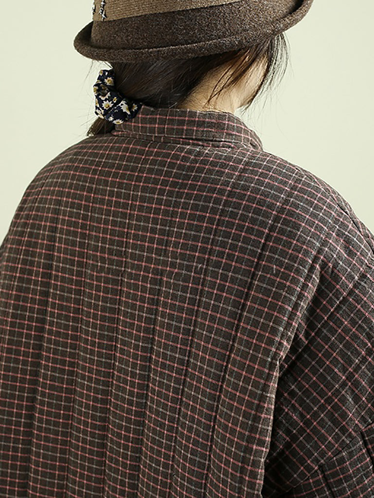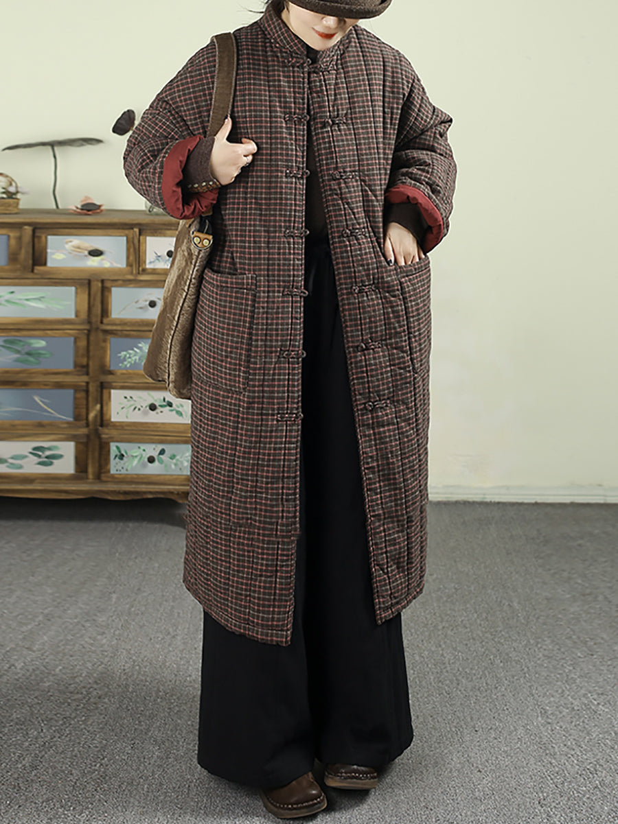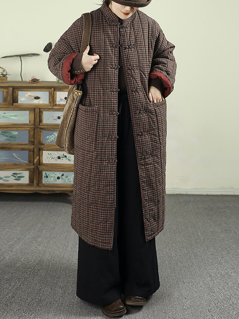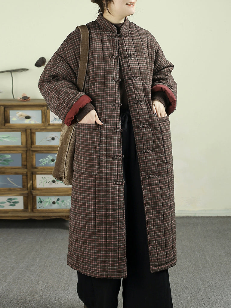 מעיל מרופד עם צווארון עומד וצווארון משובץ לחורף לנשים