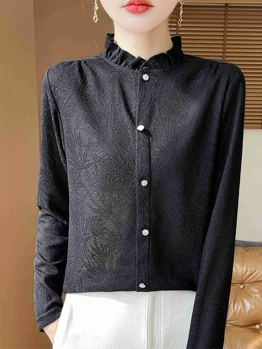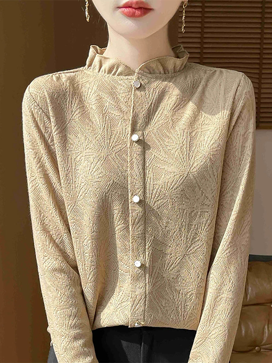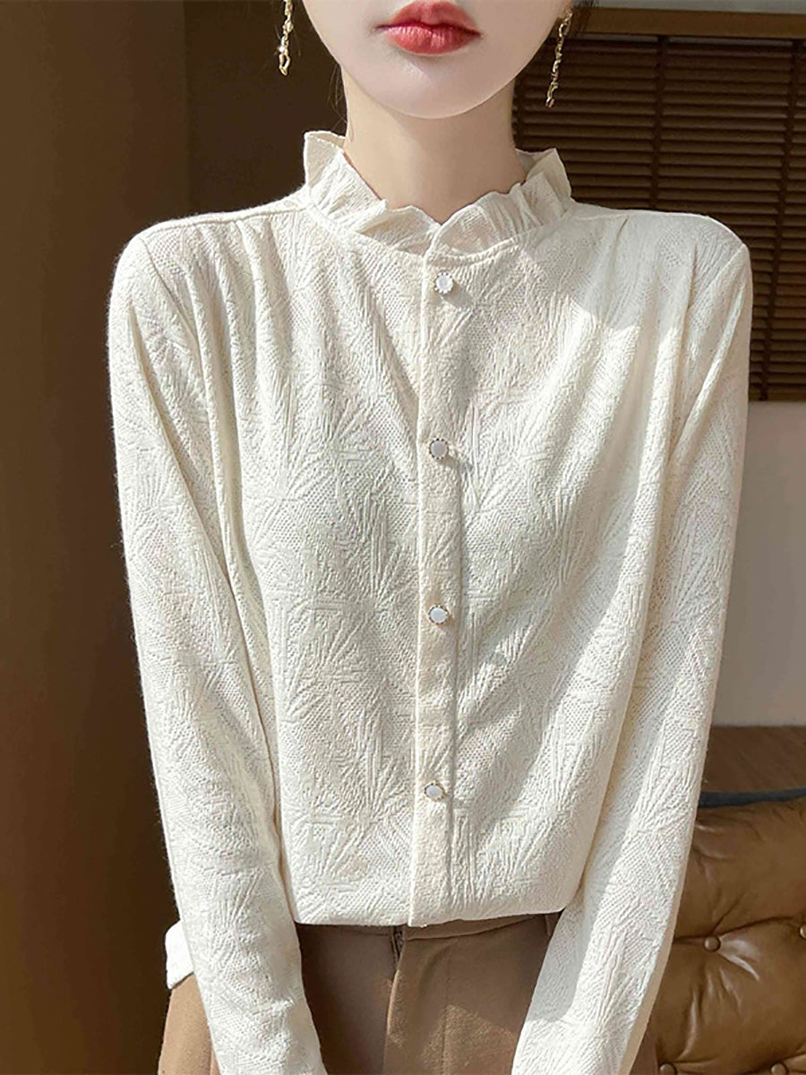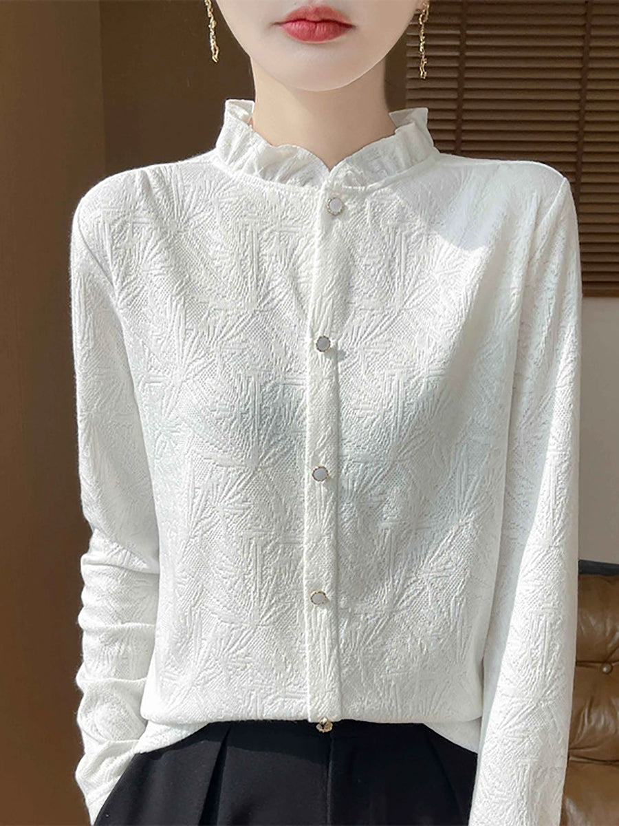 סוודר צווארון עומד של Jackqard לנשים באביב אמנותי