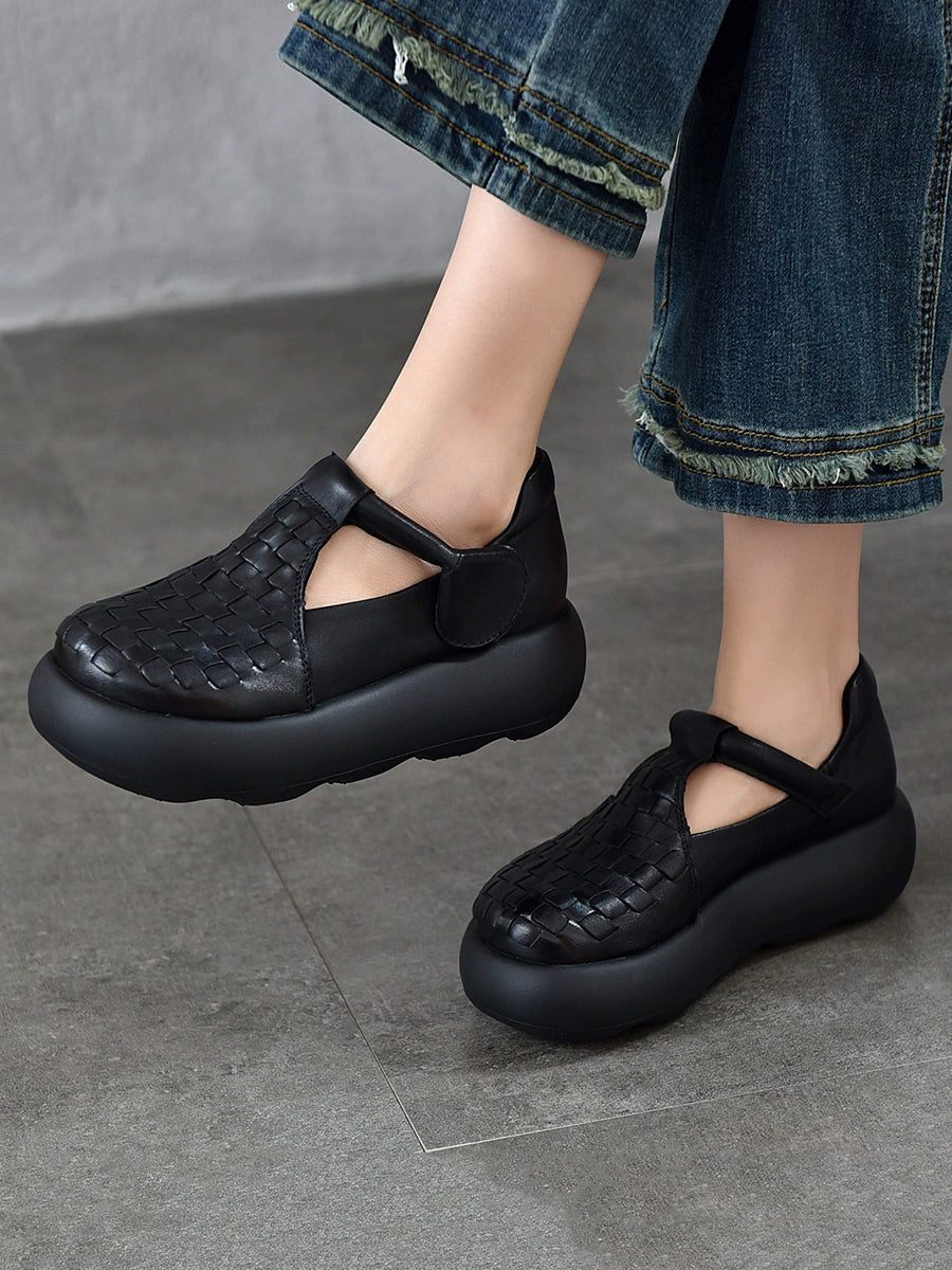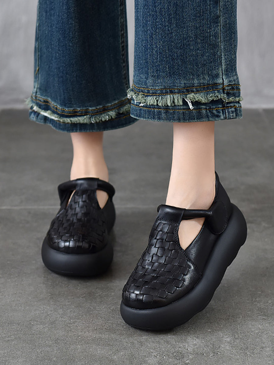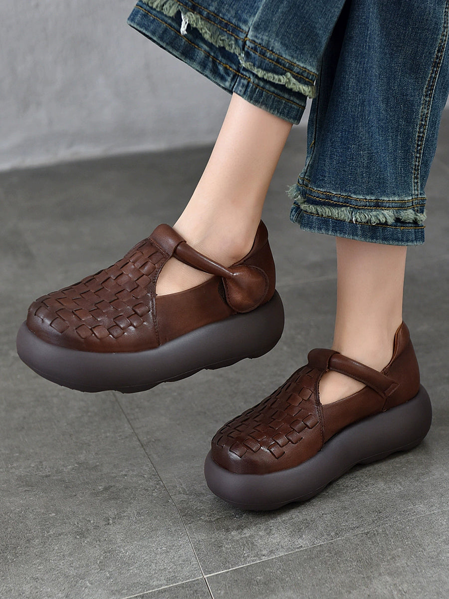 נעלי פלטפורמה ארוגות מעור אמיתי לקיץ לנשים