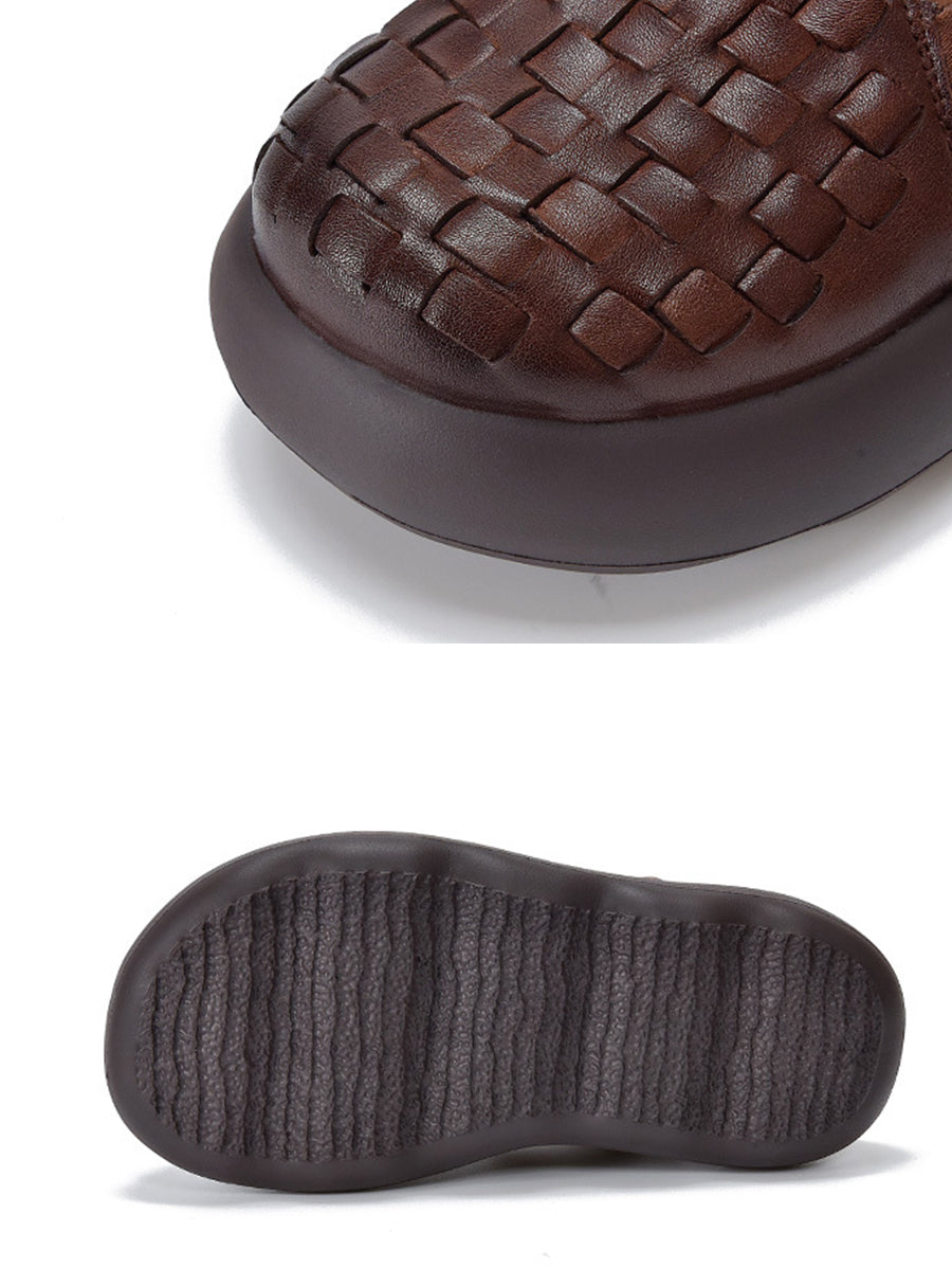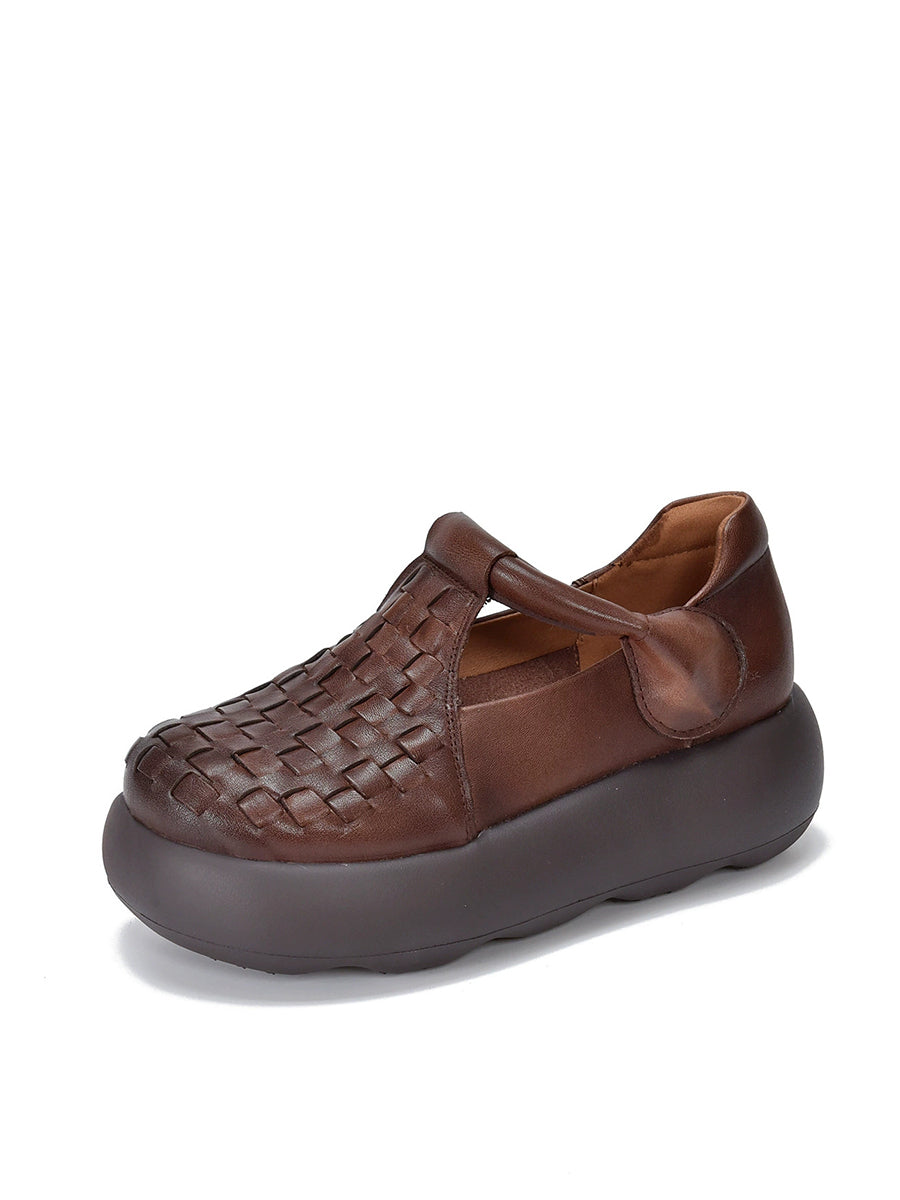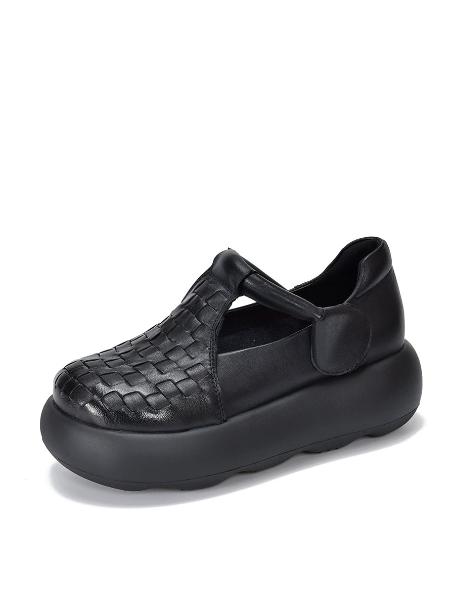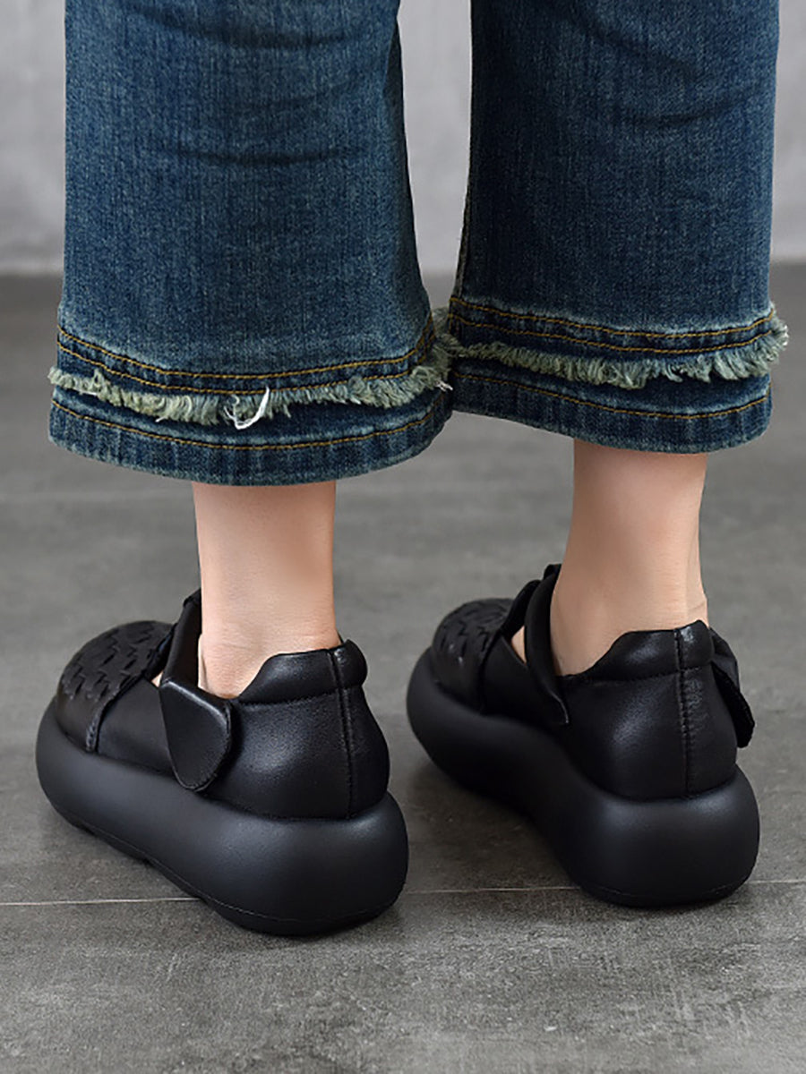 נעלי פלטפורמה ארוגות מעור אמיתי לקיץ לנשים
