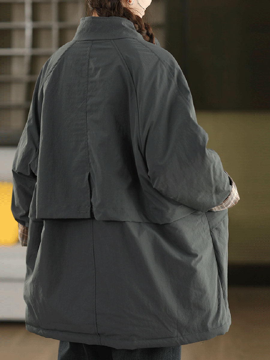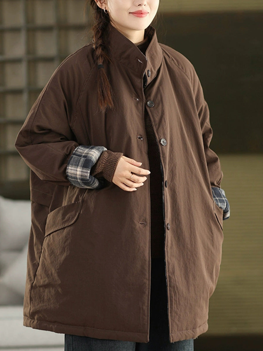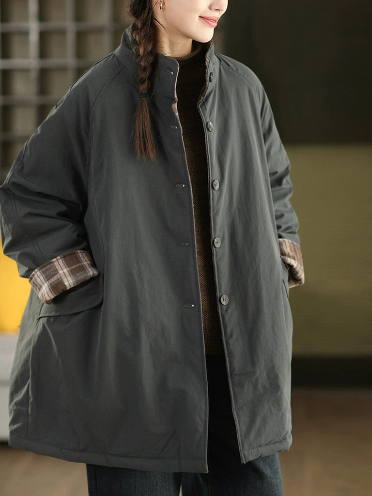 מעיל מרופד כפול בצבע טהור לחורף לנשים