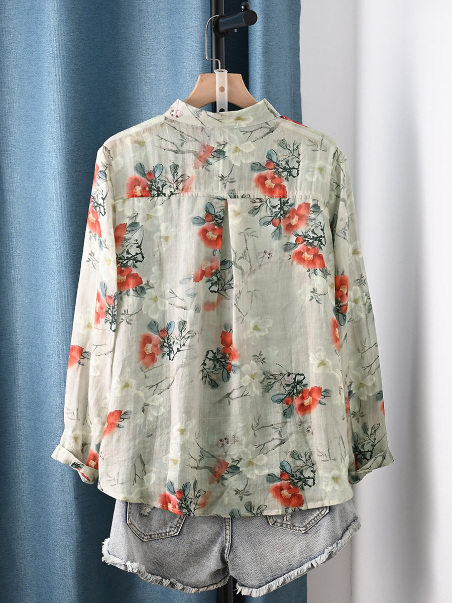 חולצת קיץ לנשים עם צווארון פרחוני אומנותי 100% רמי