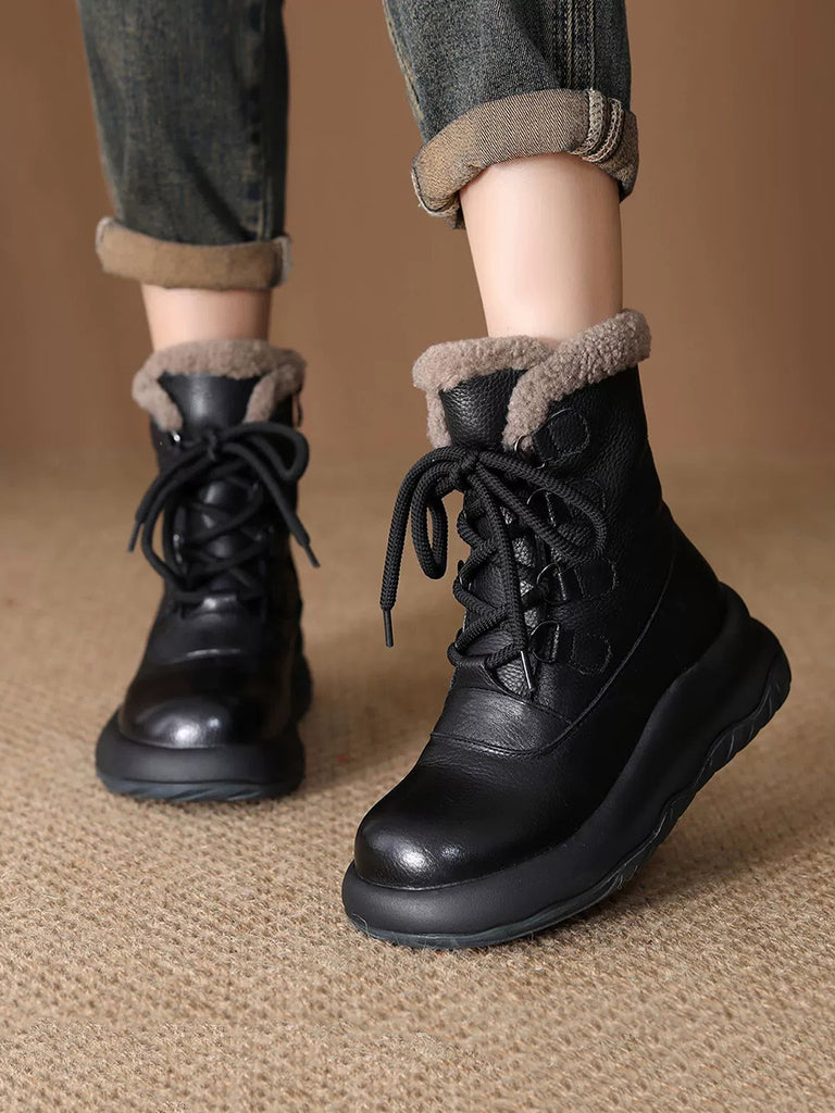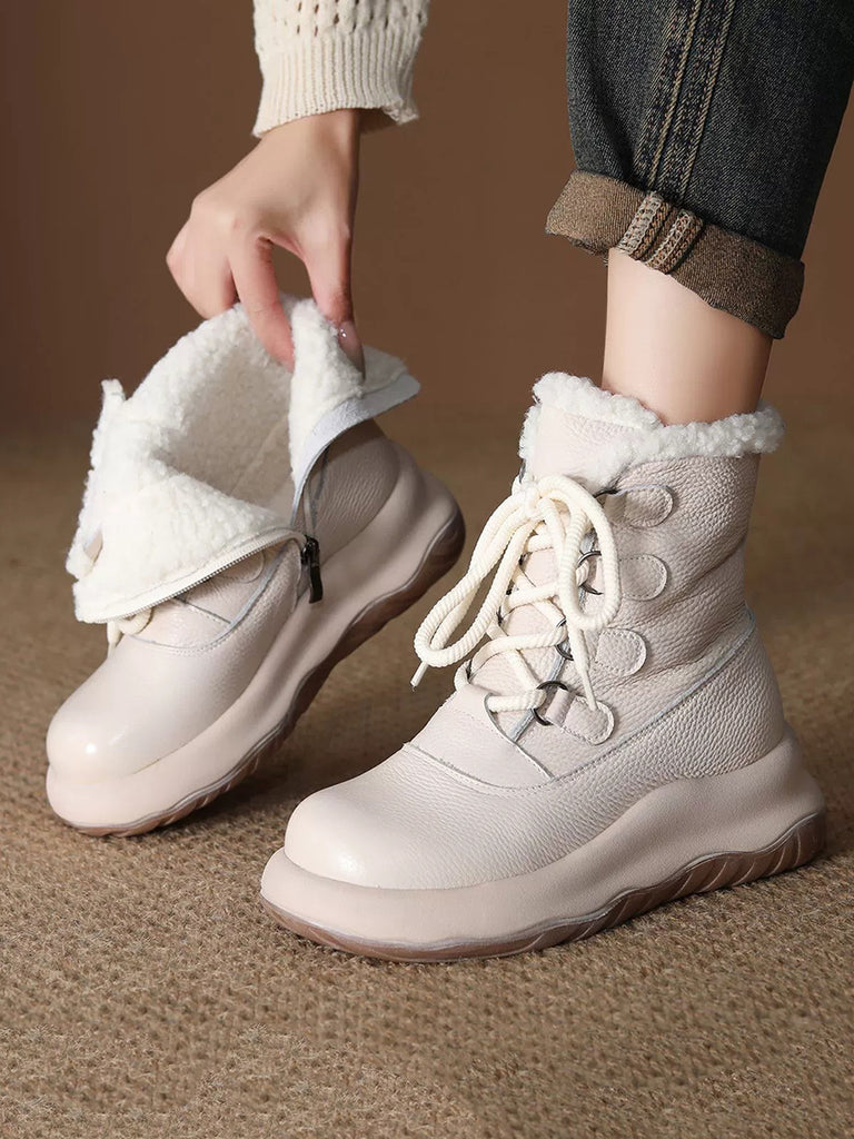 מגפי חורף מזדמנים מעור אמיתי עם בטנת פליז לנשים