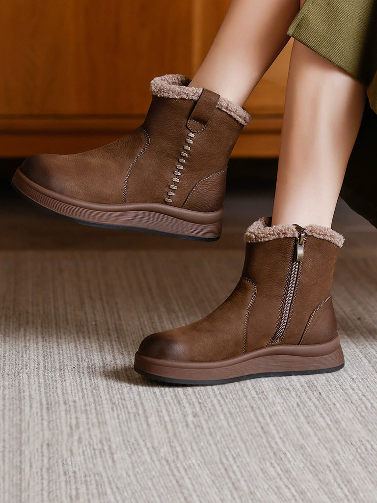 מגפי חורף שטוחים מעור אמיתי רטרו לנשים