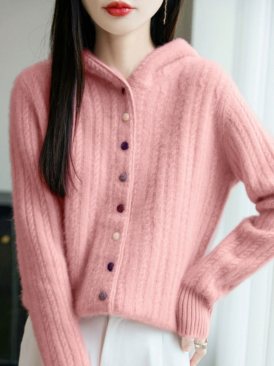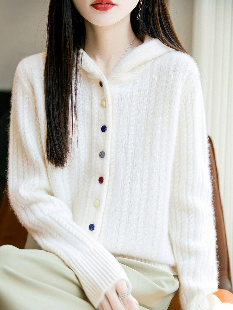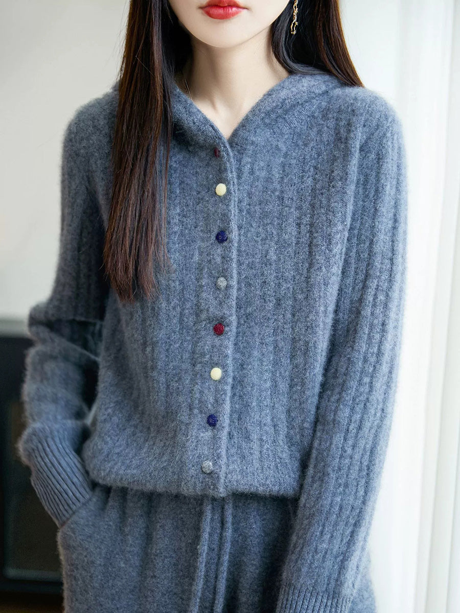 מעיל סוודר עם קפוצ'ון בצבע טהור וקז'ואל לנשים בחורף