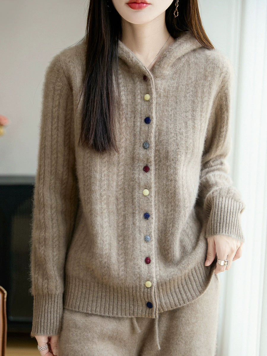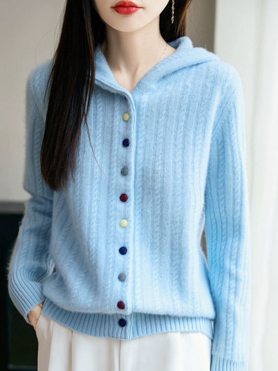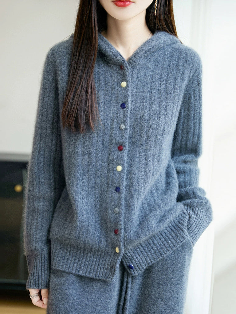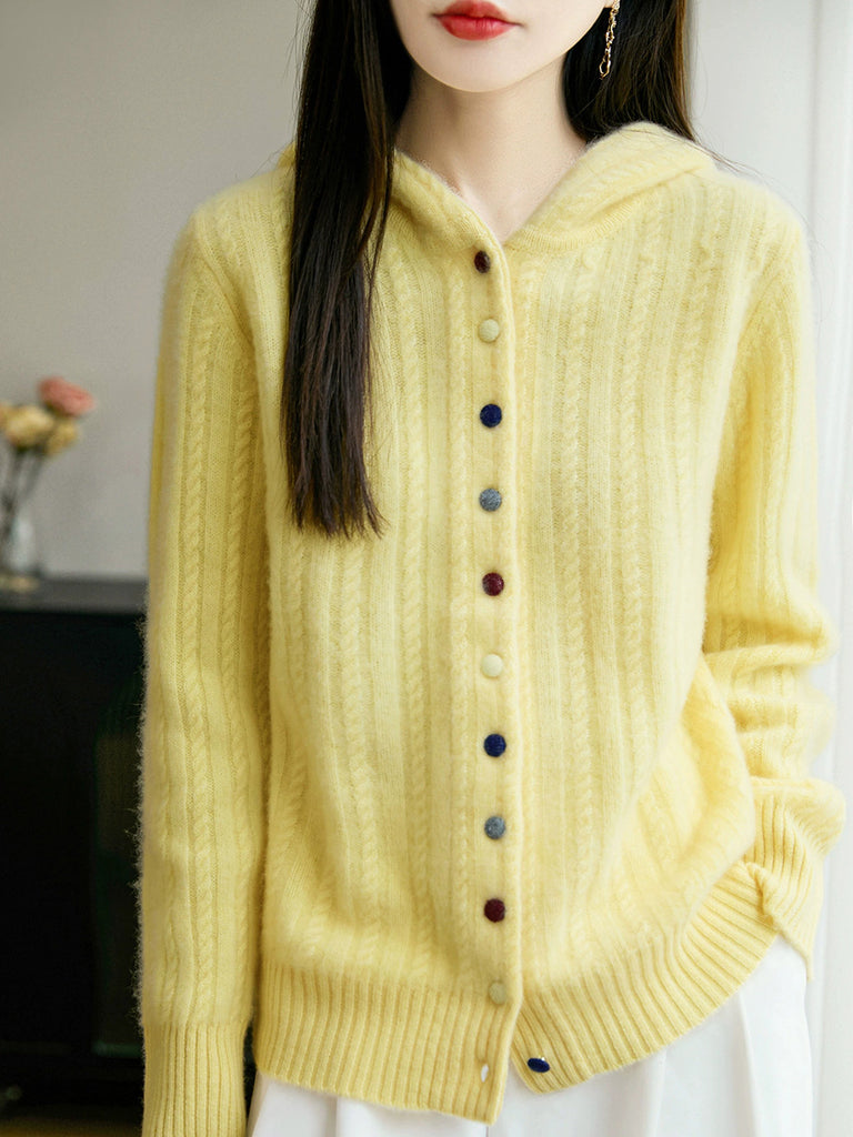 מעיל סוודר עם קפוצ'ון בצבע טהור וקז'ואל לנשים בחורף