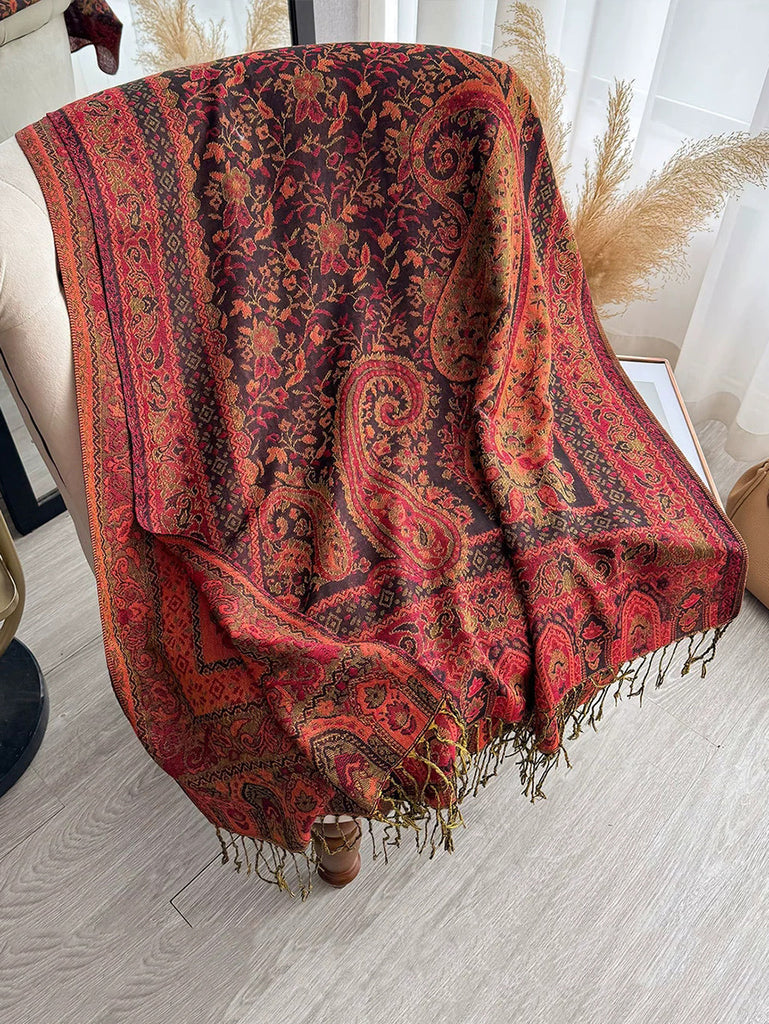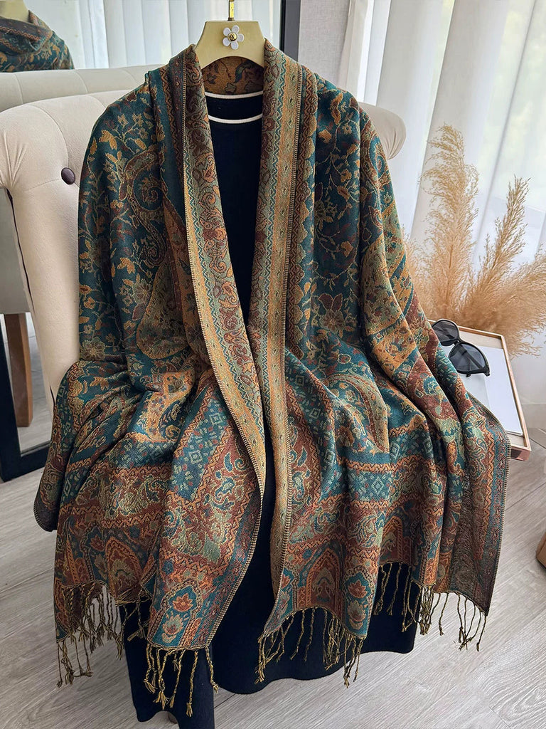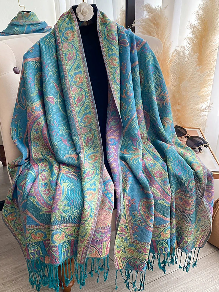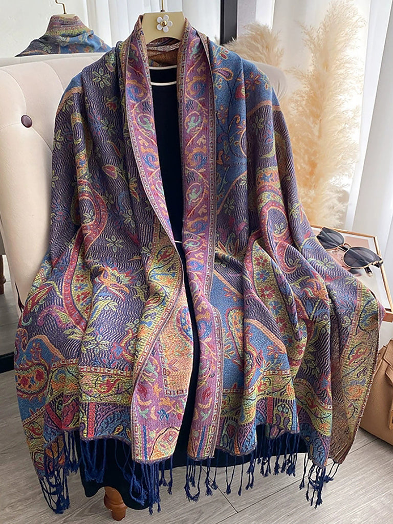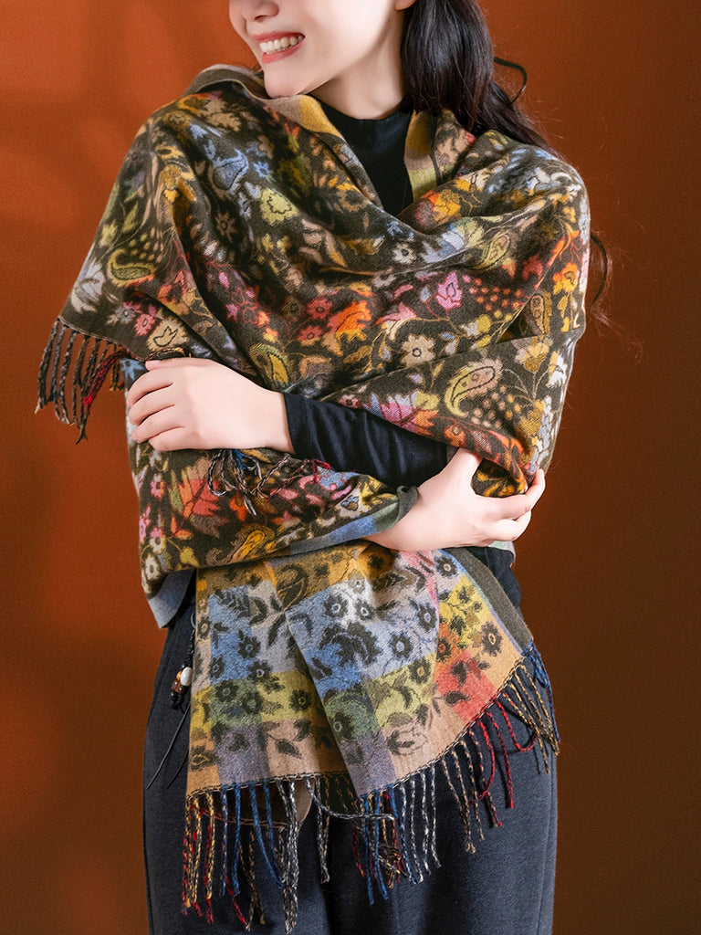 צעיף צעיף גדילים עם פרחים וינטג' לחורף לנשים