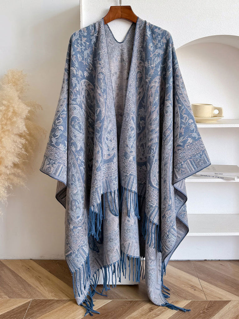 צעיף צעיף עם גדילים בהדפס אתני לנשים