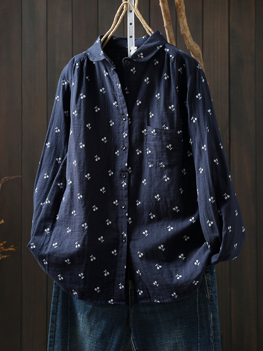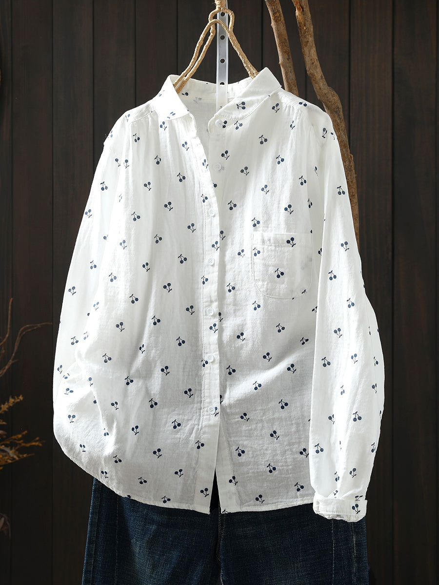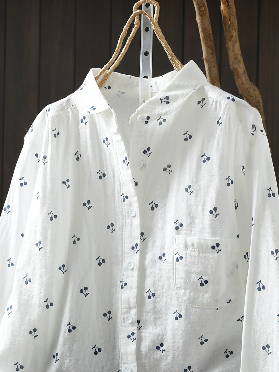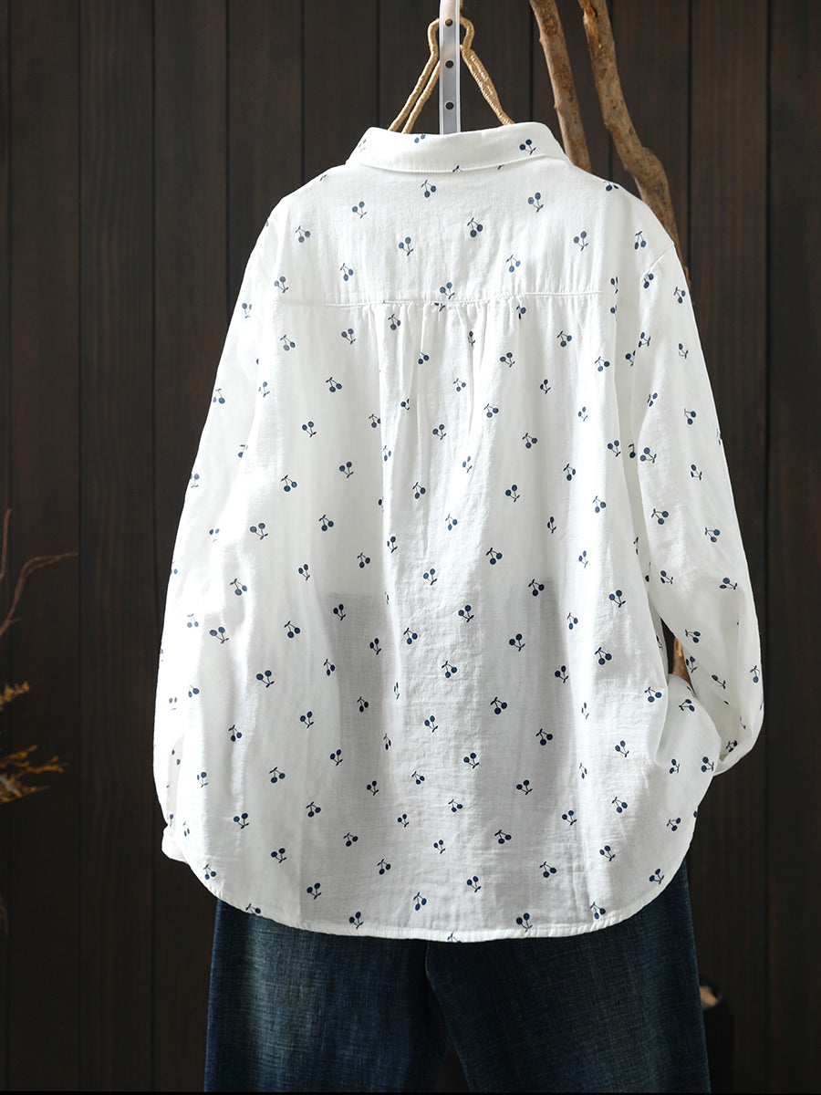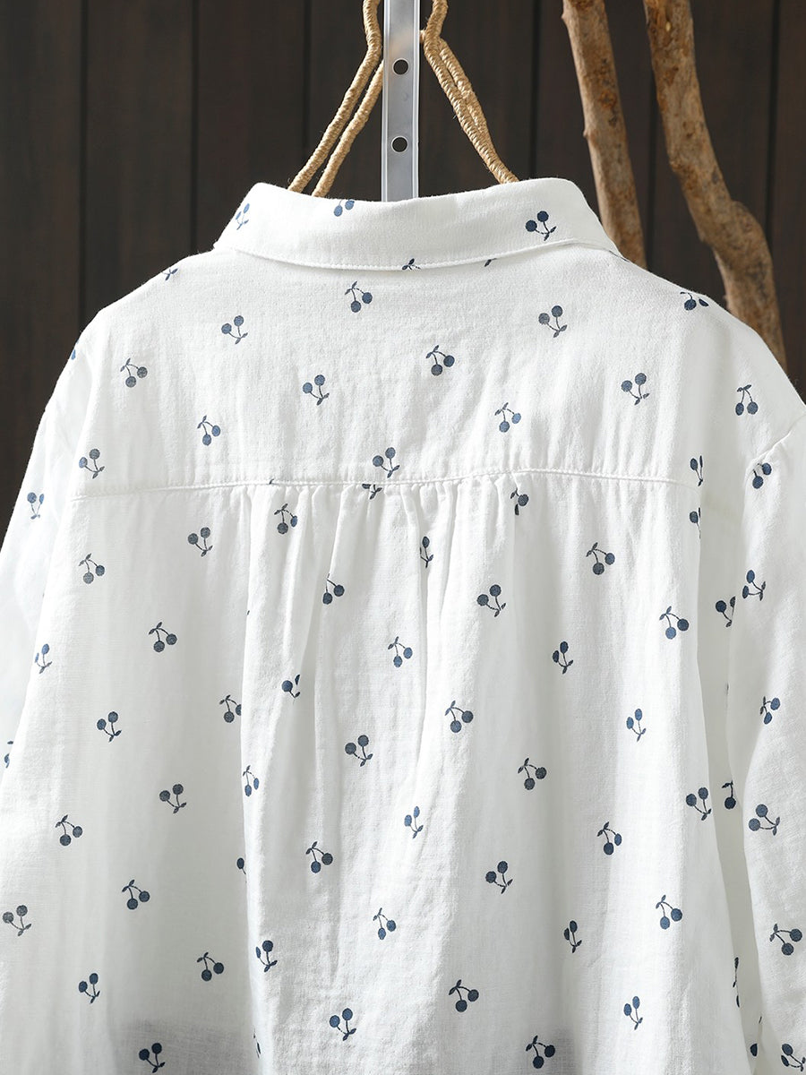 חולצת אביב לנשים עם רקמת דובדבן אמנותית 100% כותנה