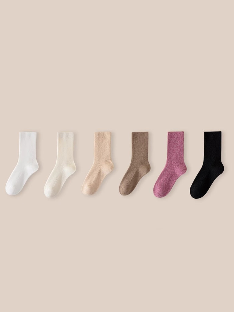 6 זוגות גרביים לנשים בצבע טהור חורפי מזדמן