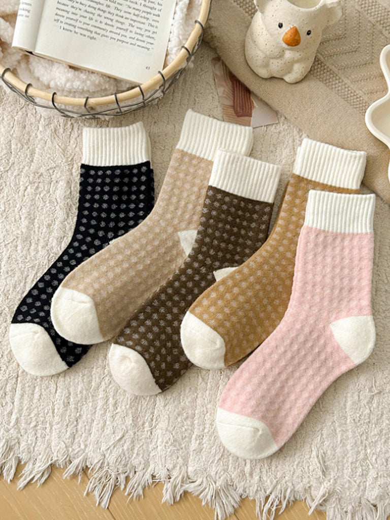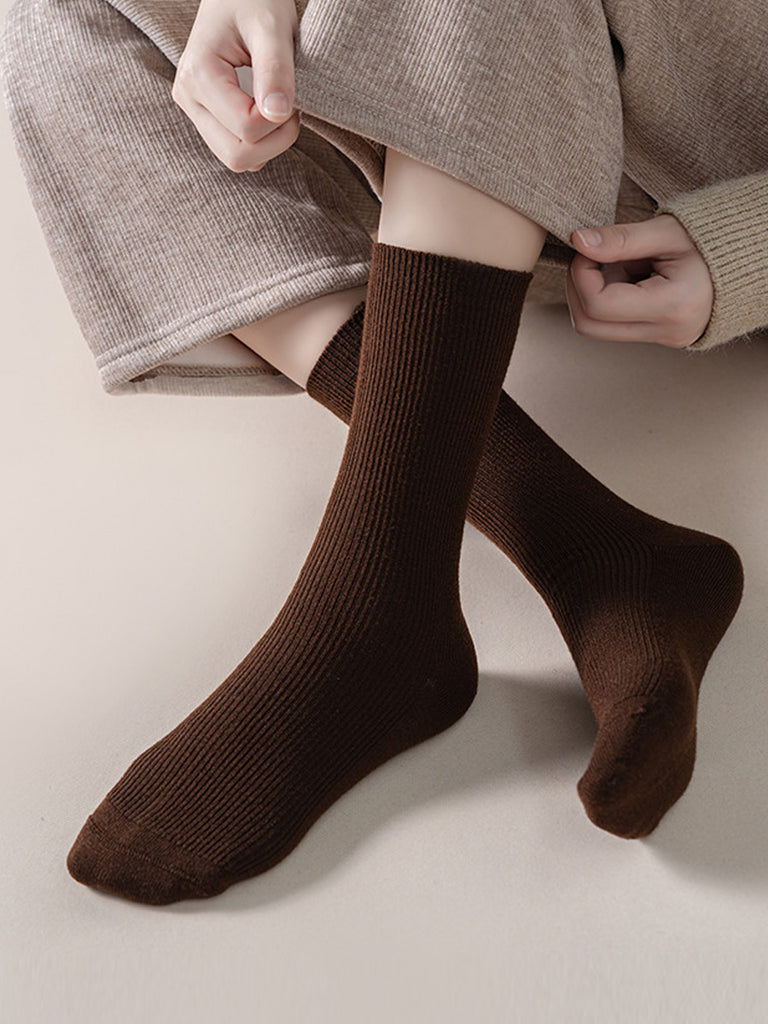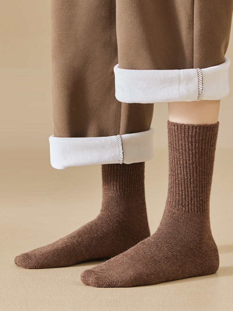5 זוגות גרביים חמות לנשים בצבע טהור לחורף