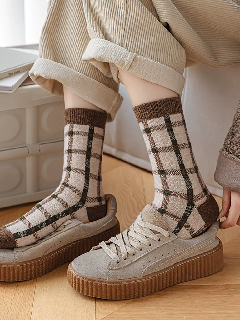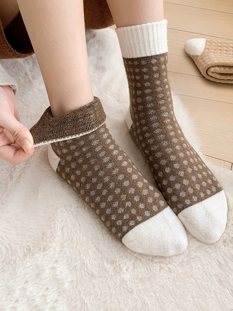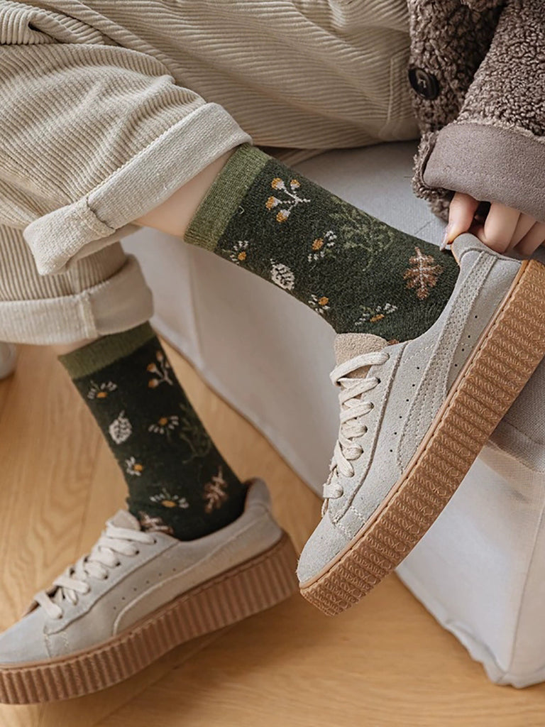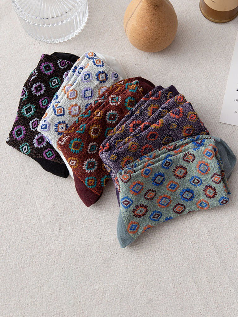 6 זוגות גרבי חורף לנשים עם פרחים משבצות אקארד