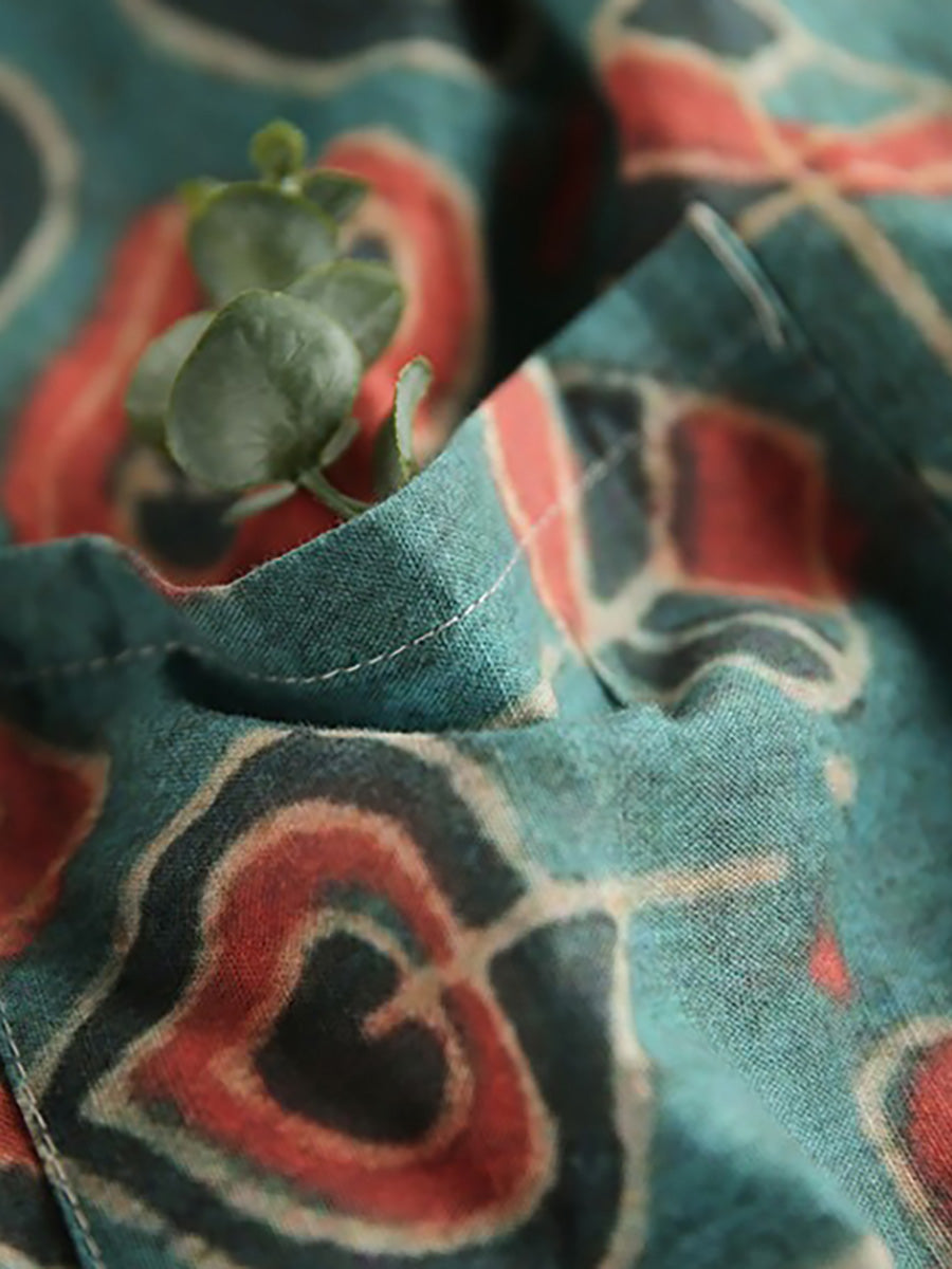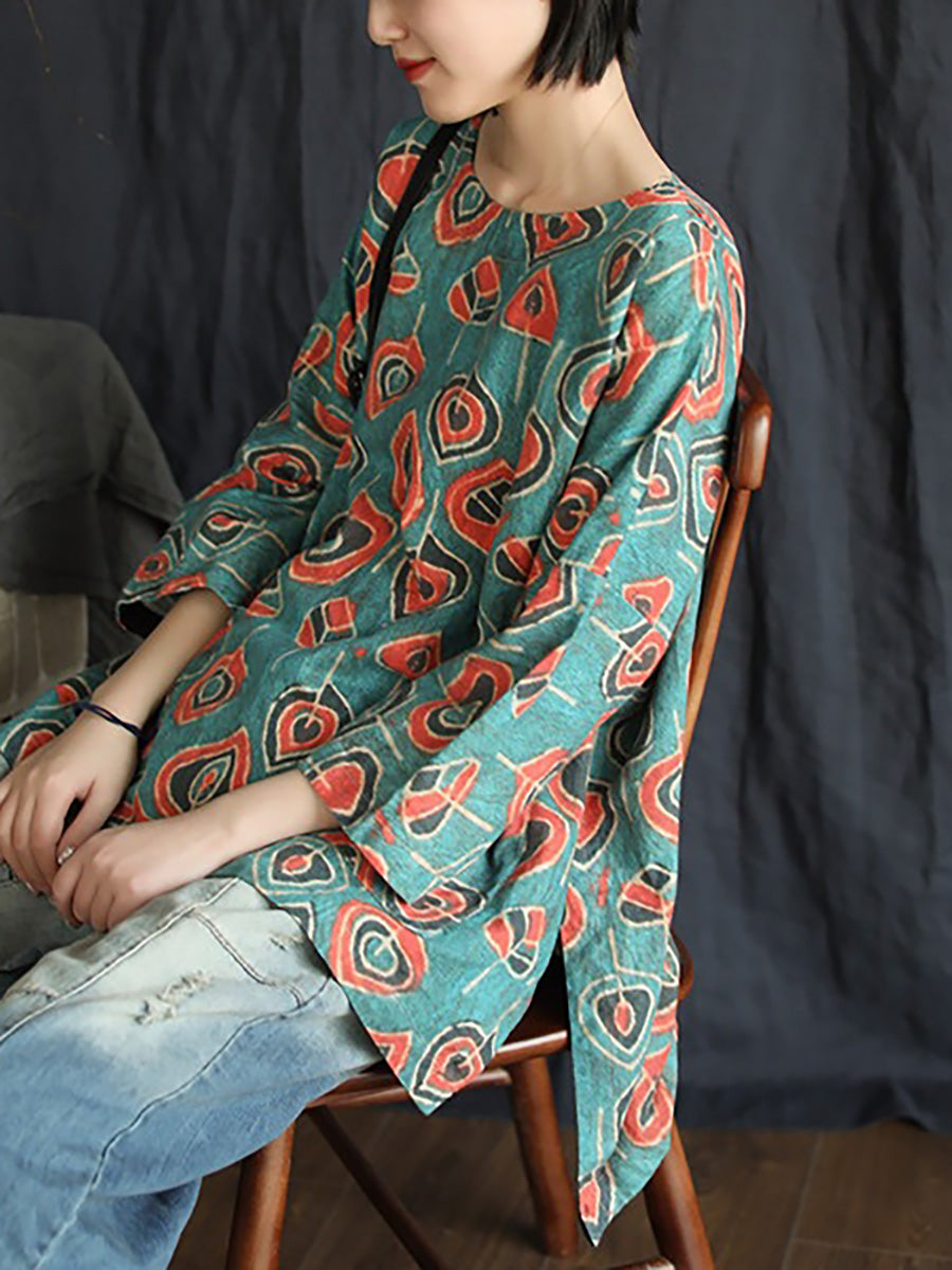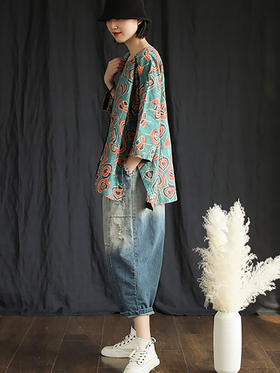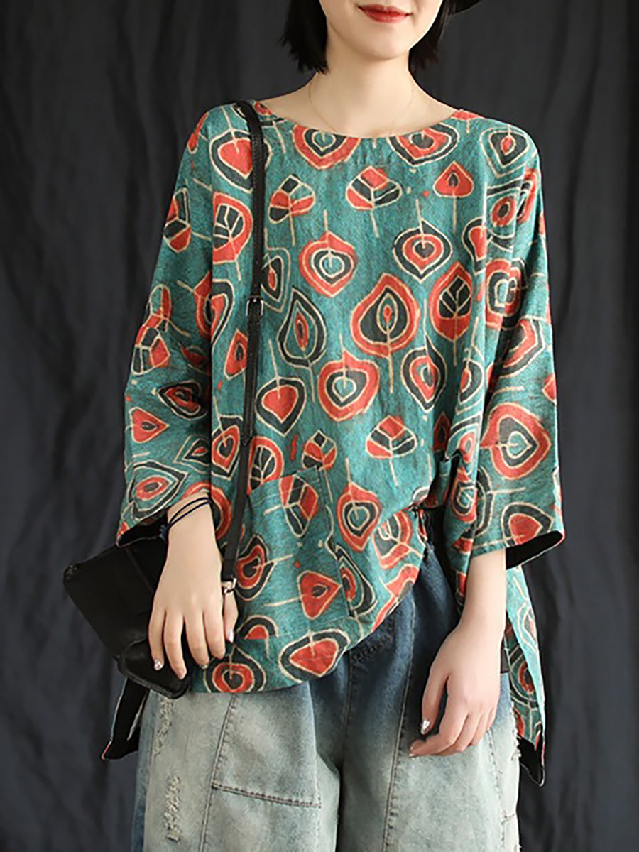 פלוס סייז Buykud קז'ואל פרחוני 100% פשתן טי שירט