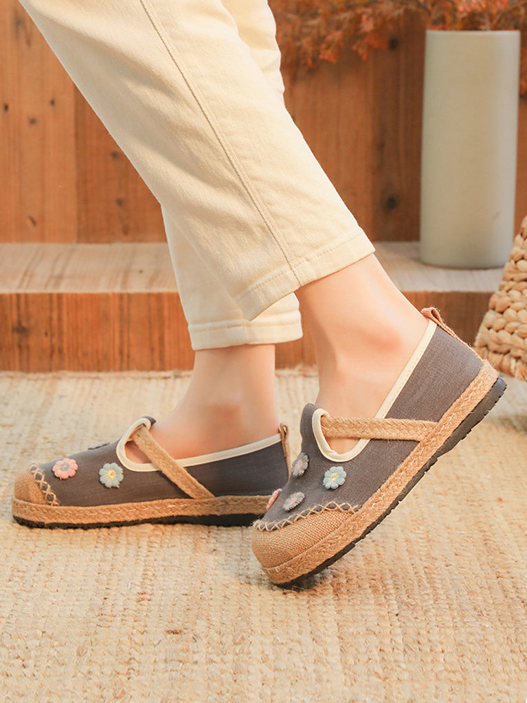 נשים Artsy קיץ פרח רקמת נעלי פשתן