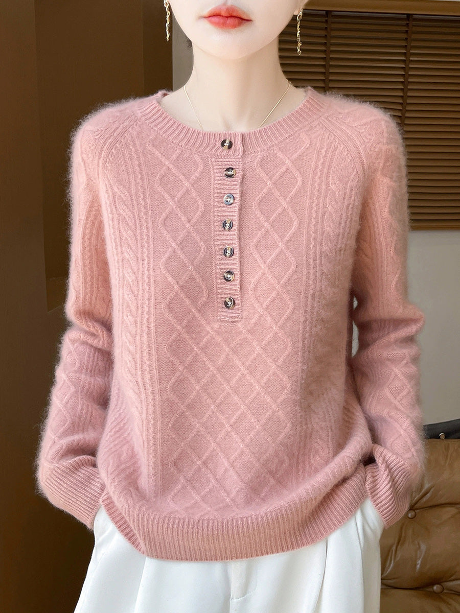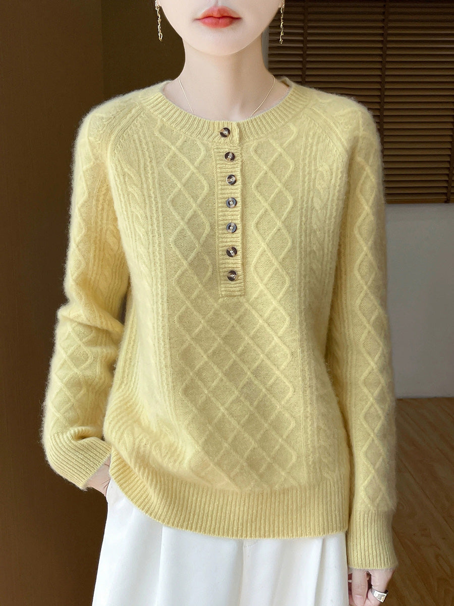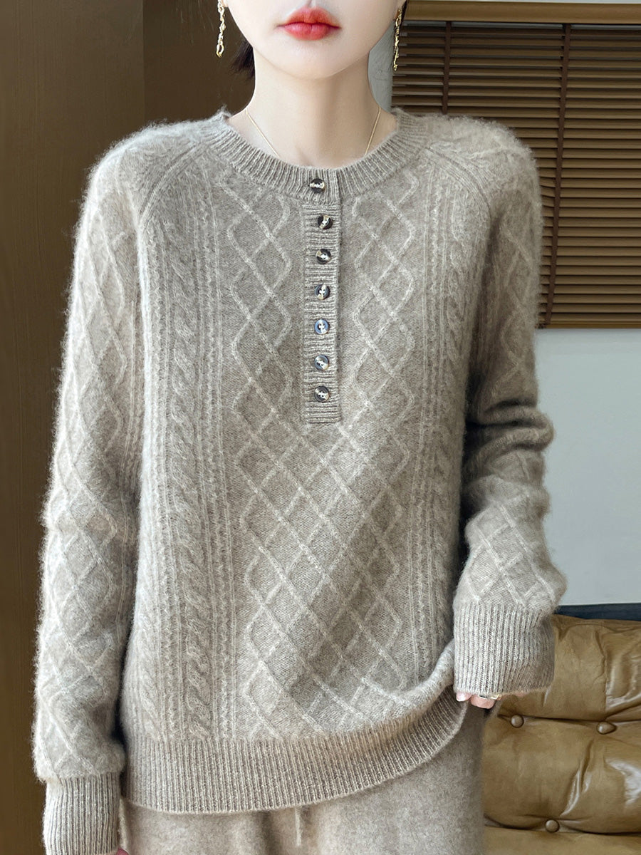 סוודר צמר סרוג עם צווארון O וצווארון, צווארון O, בסגנון אומנותי לנשים, סתיו