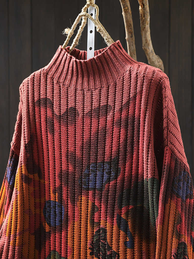 נשים סתיו אתני קולורבלוק סוודר חצי צווארון גולף