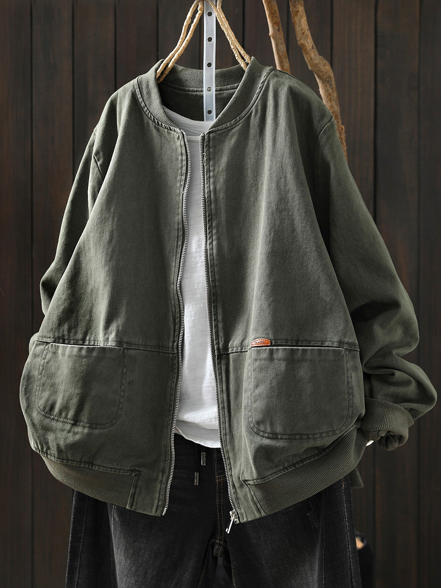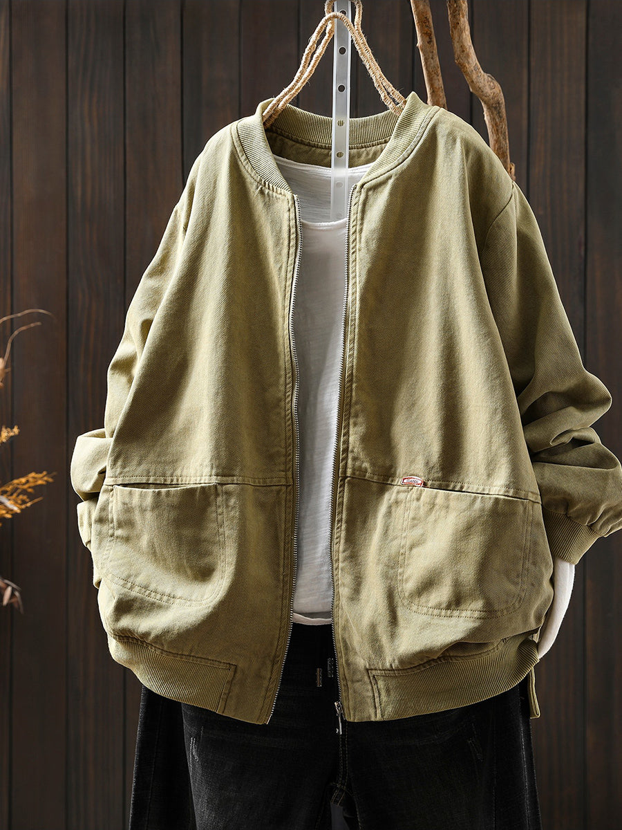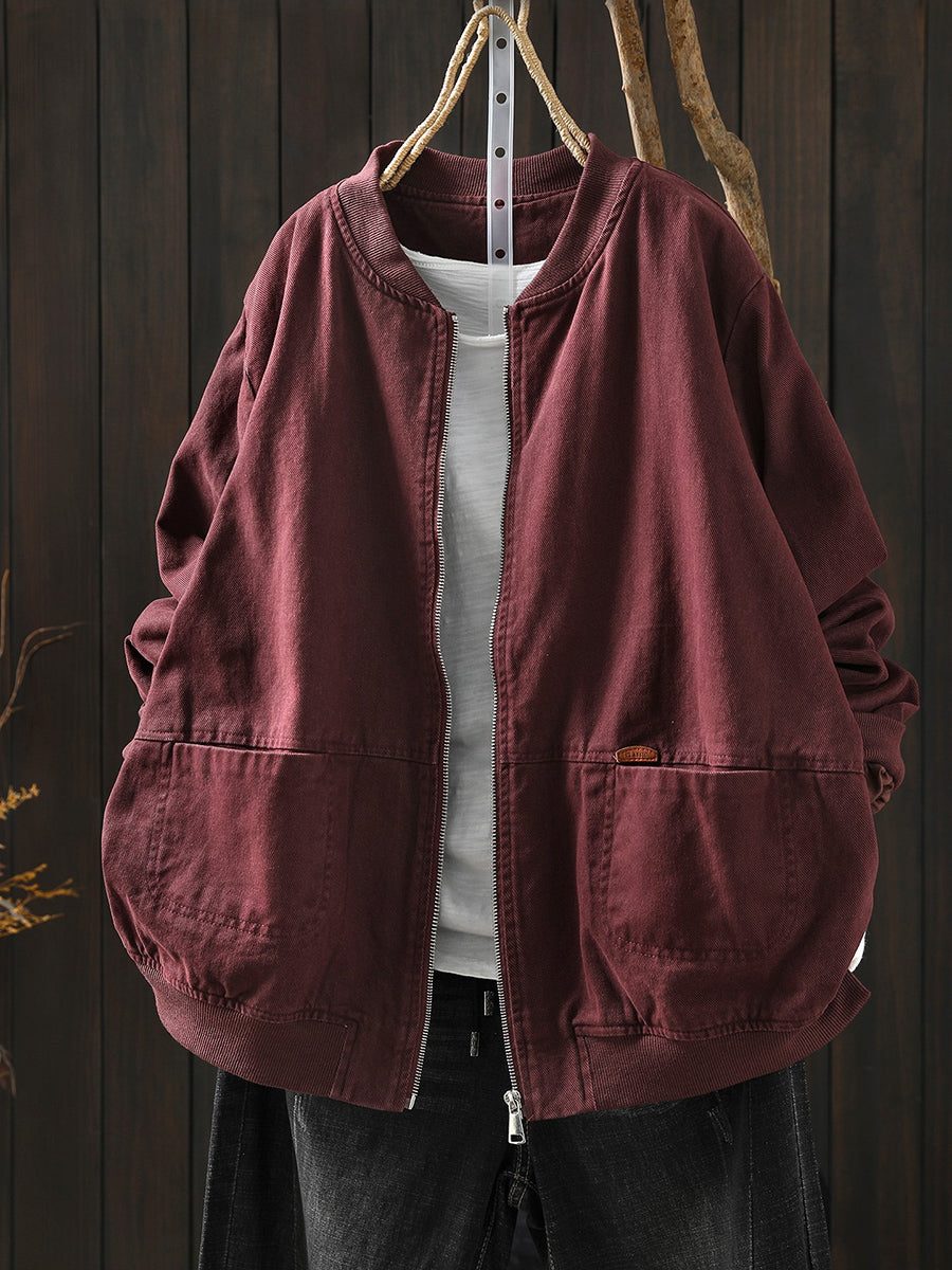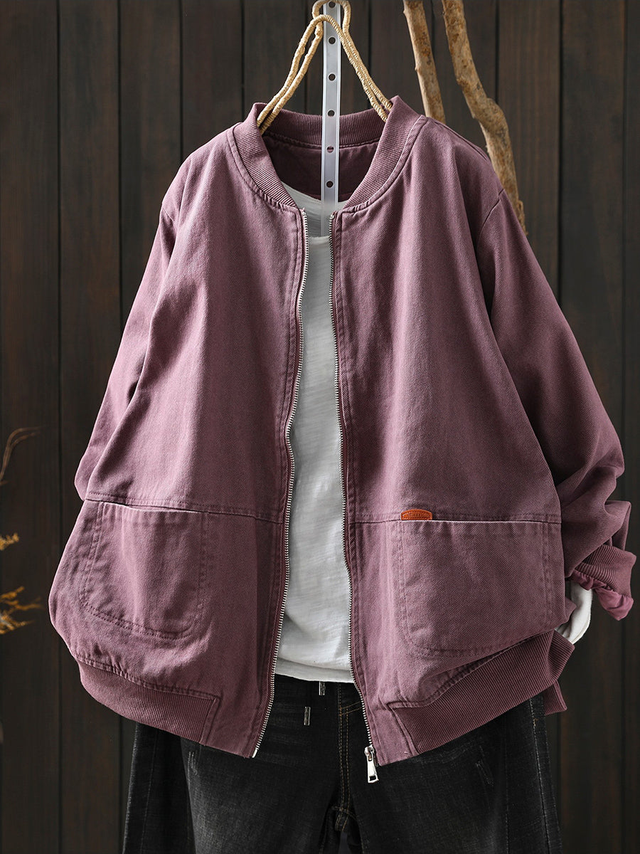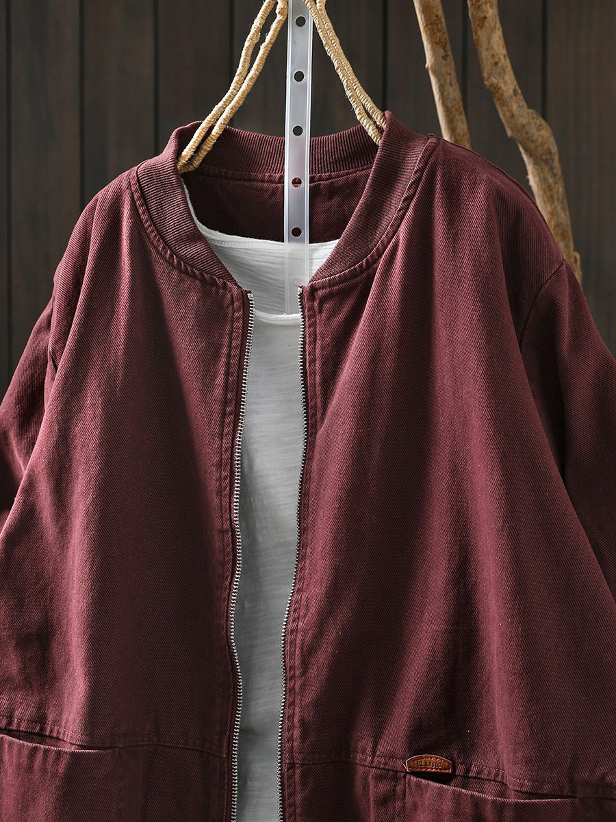 ז'קט צווארון עומד בצבע טהור בצבע רטרו אביב לנשים