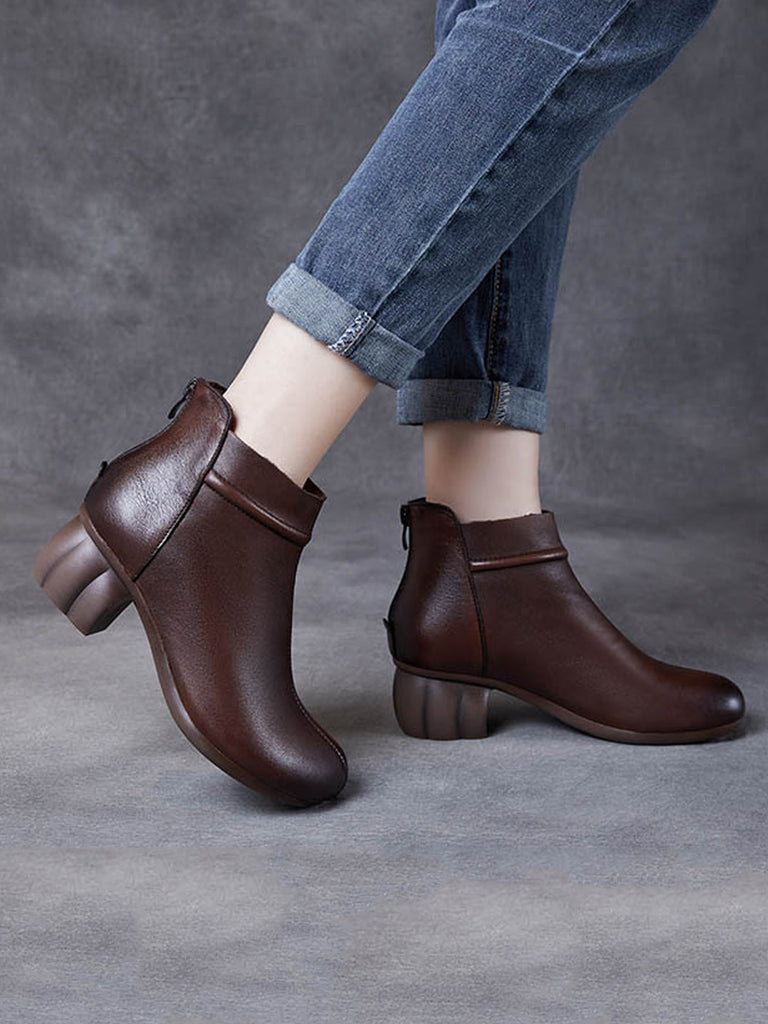 מגפי קרסול מעור אמיתי וינטג' לנשים עם עקב בינוני