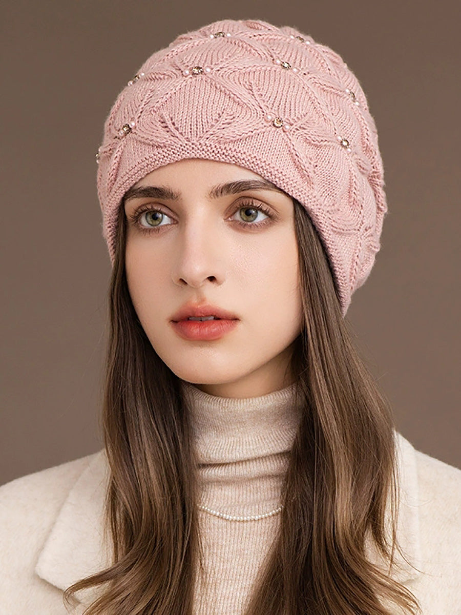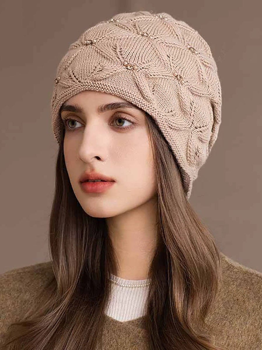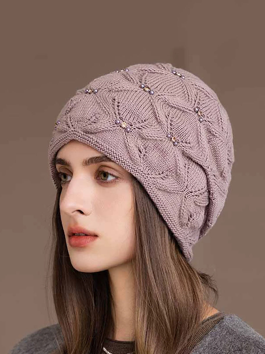 כובע סרוג בצבע טהור לאמנויות חורף לנשים