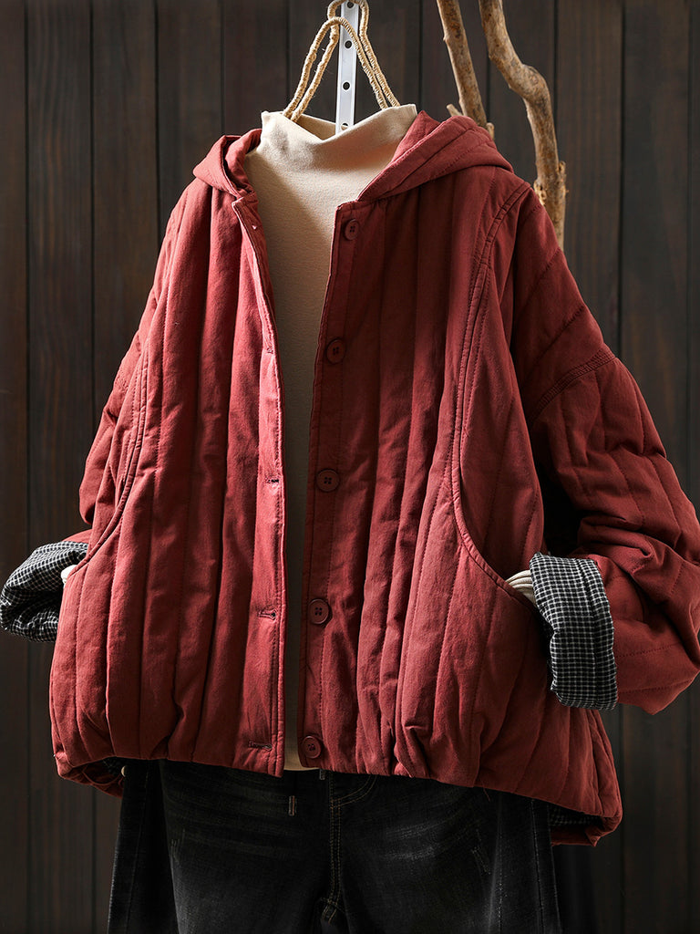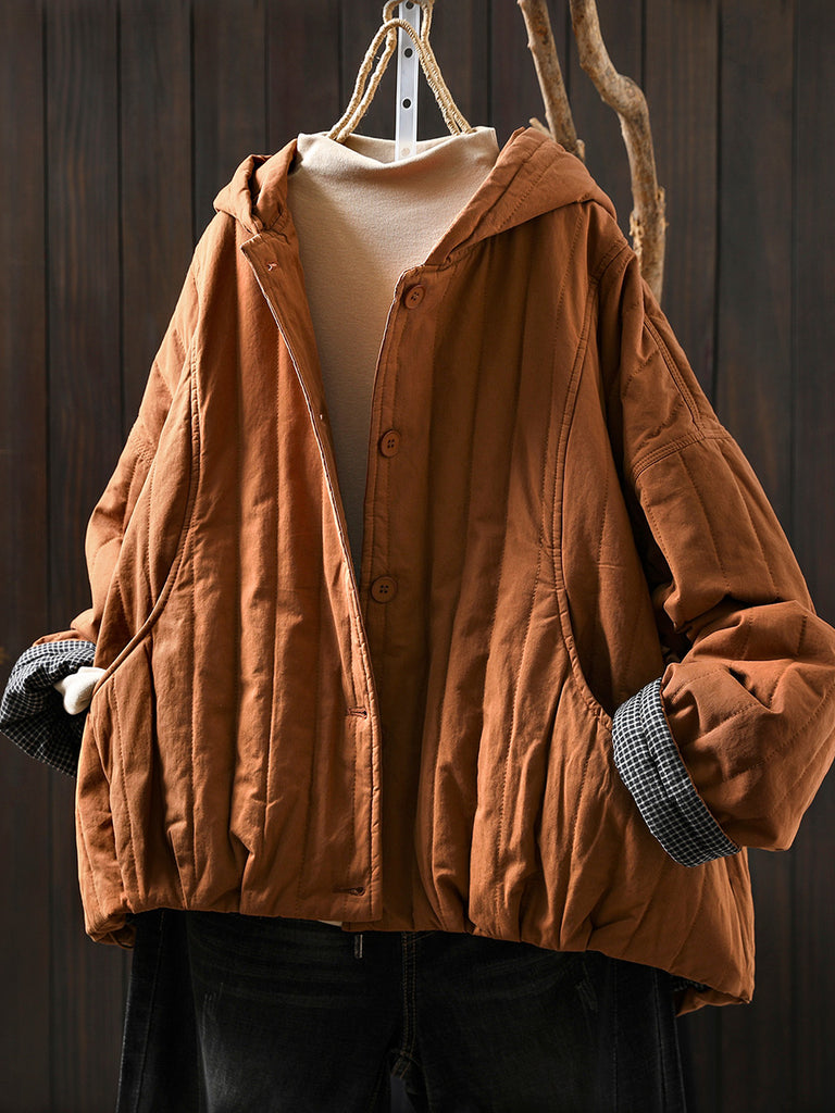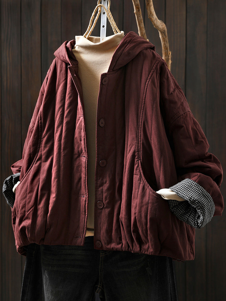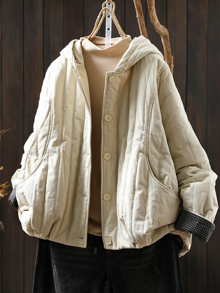 מעיל מרופד בצבע טהור מזדמן לחורף לנשים