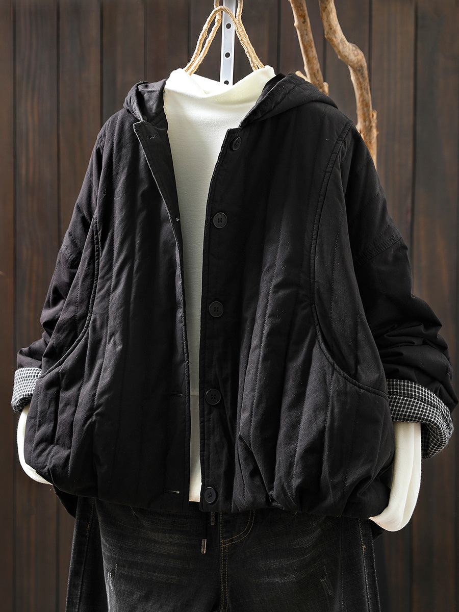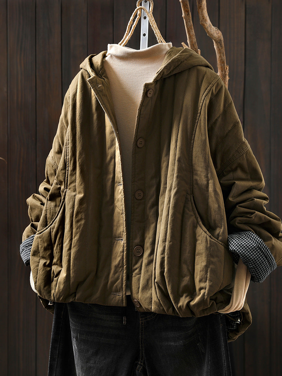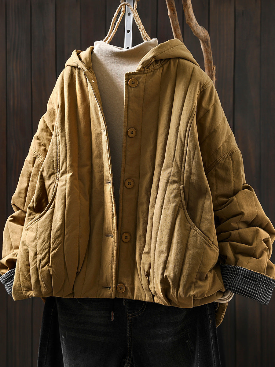 מעיל מרופד בצבע טהור מזדמן לחורף לנשים