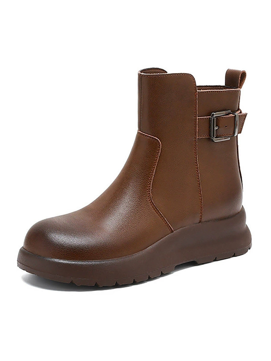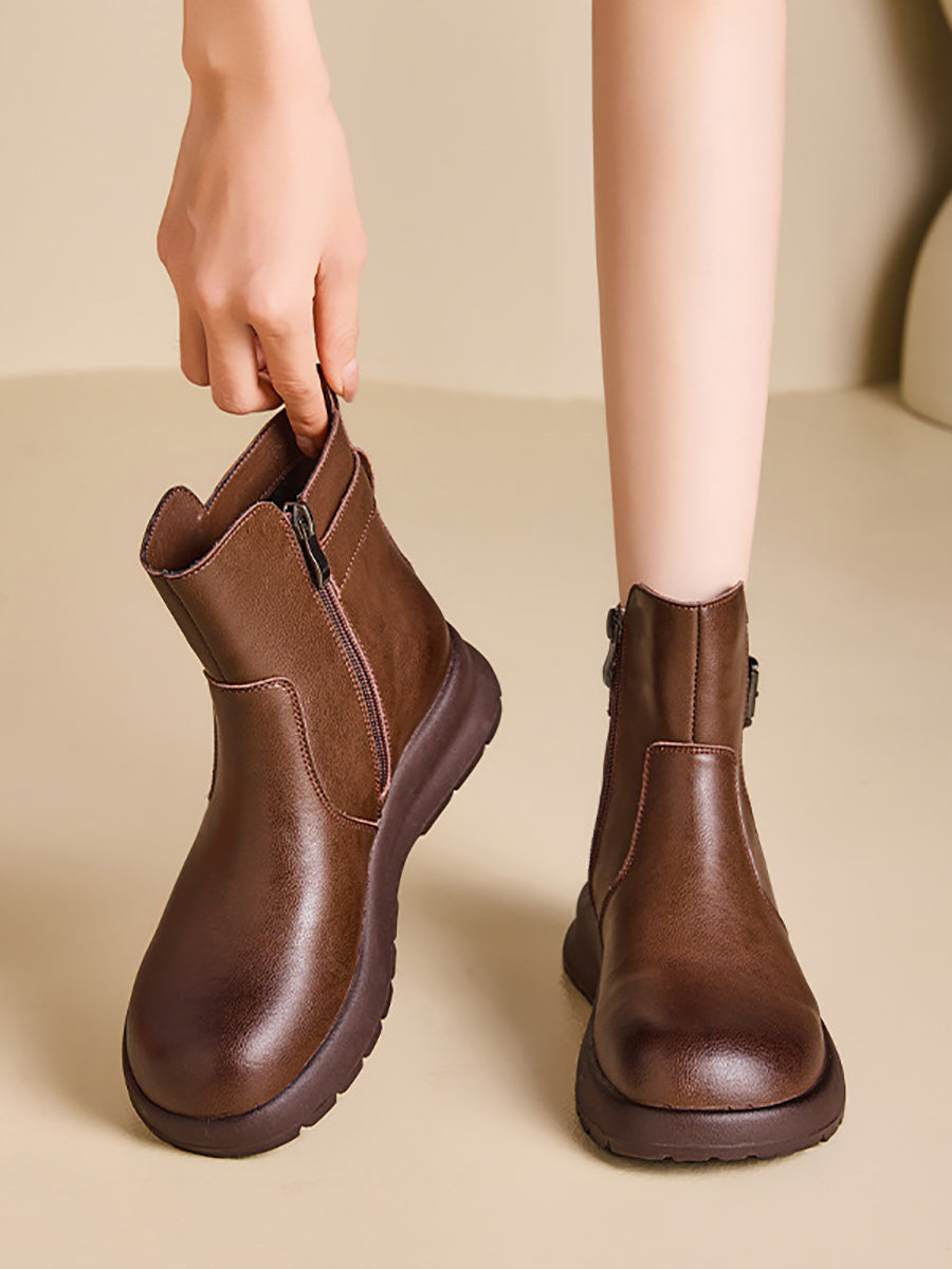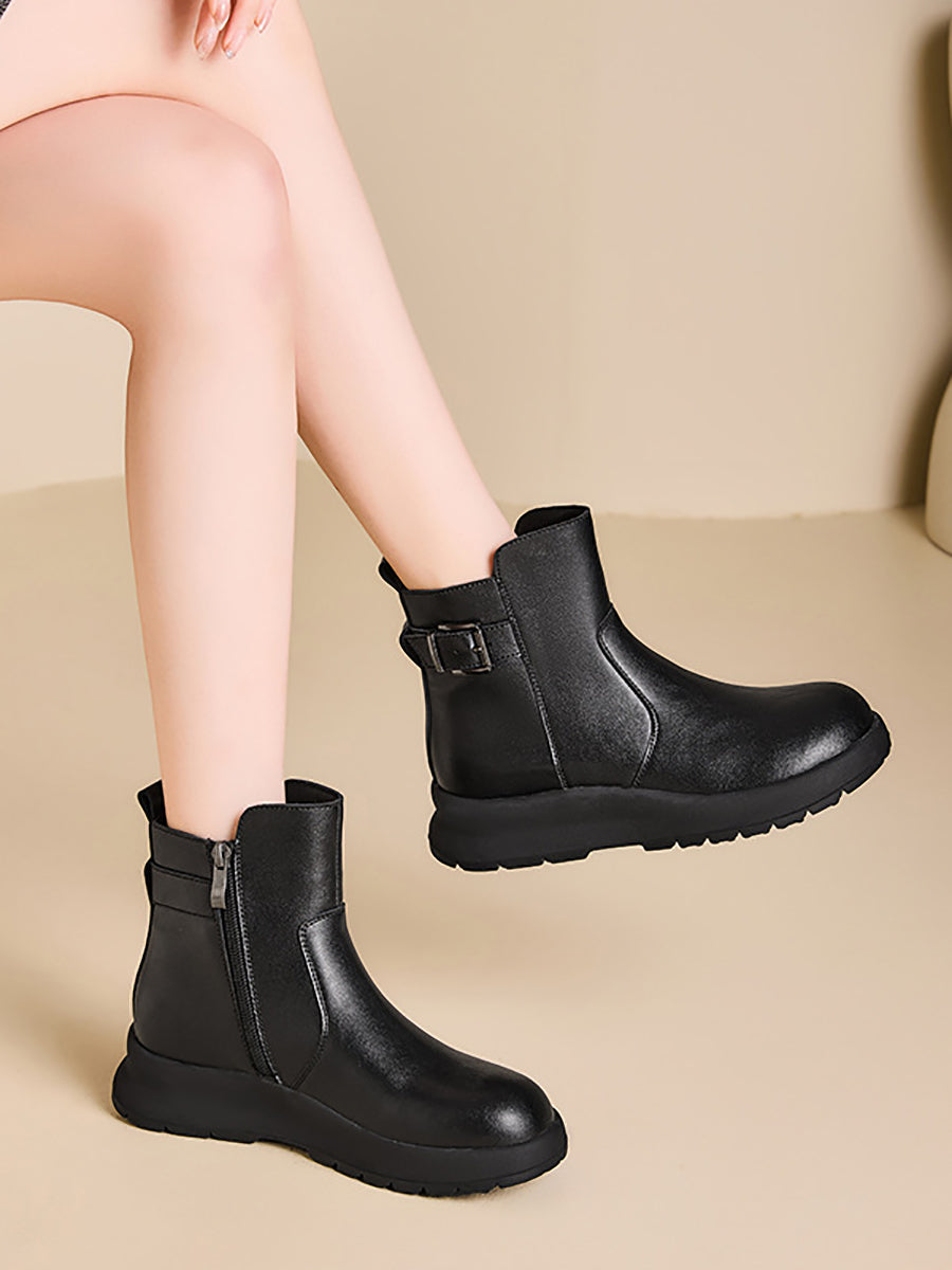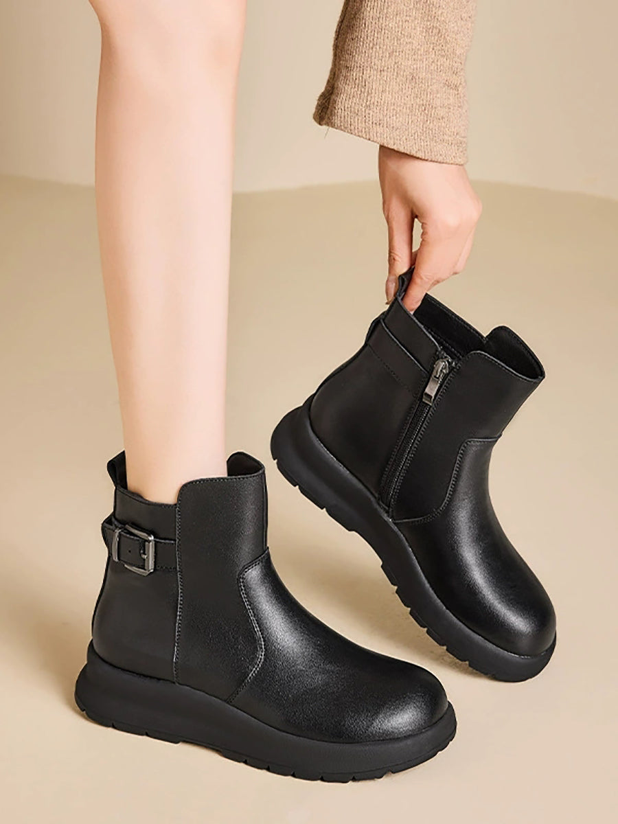 מגפי מרטין פלטפורמה מעור אמיתי לחורף לנשים