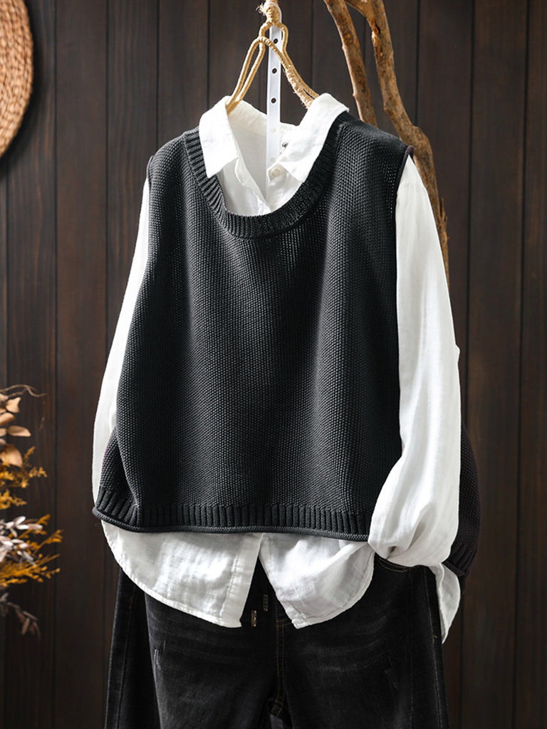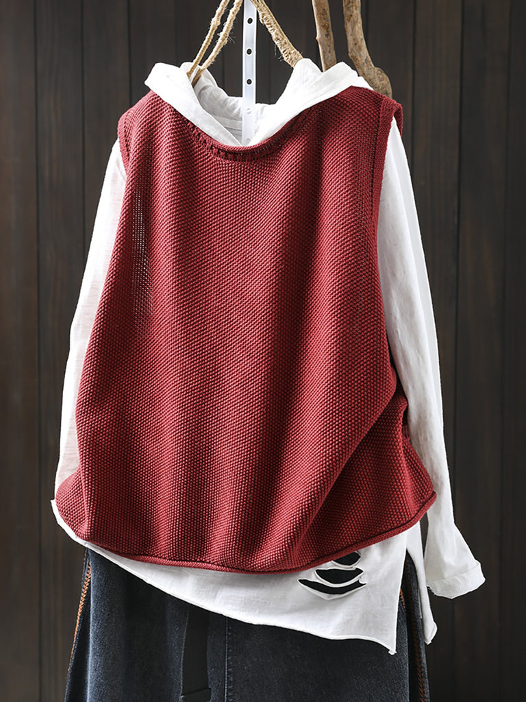 נשים חורף וסט סרוג גיאומטרי רטרו