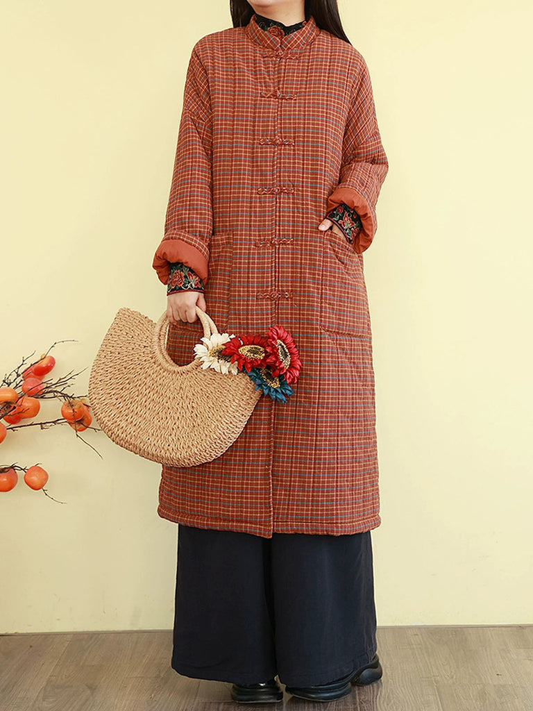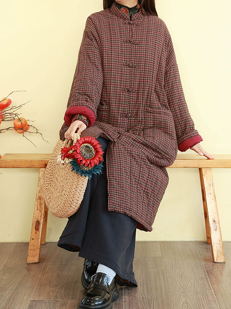 Ženski zimski retro kaput s rešetkastim ovratnikom i podstavljenim ovratnikom