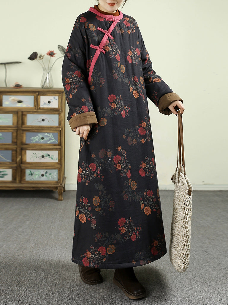 Ženski zimski kaput s O-izrezom i cvjetnim uzorkom, 100% pamuk