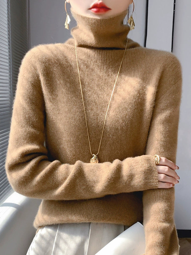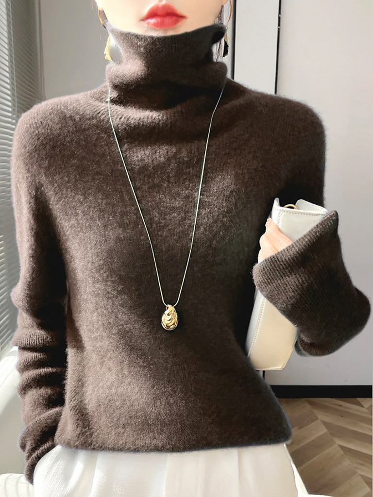 Ženska zimska ležerna bluza s dolčevitom u čistoj boji